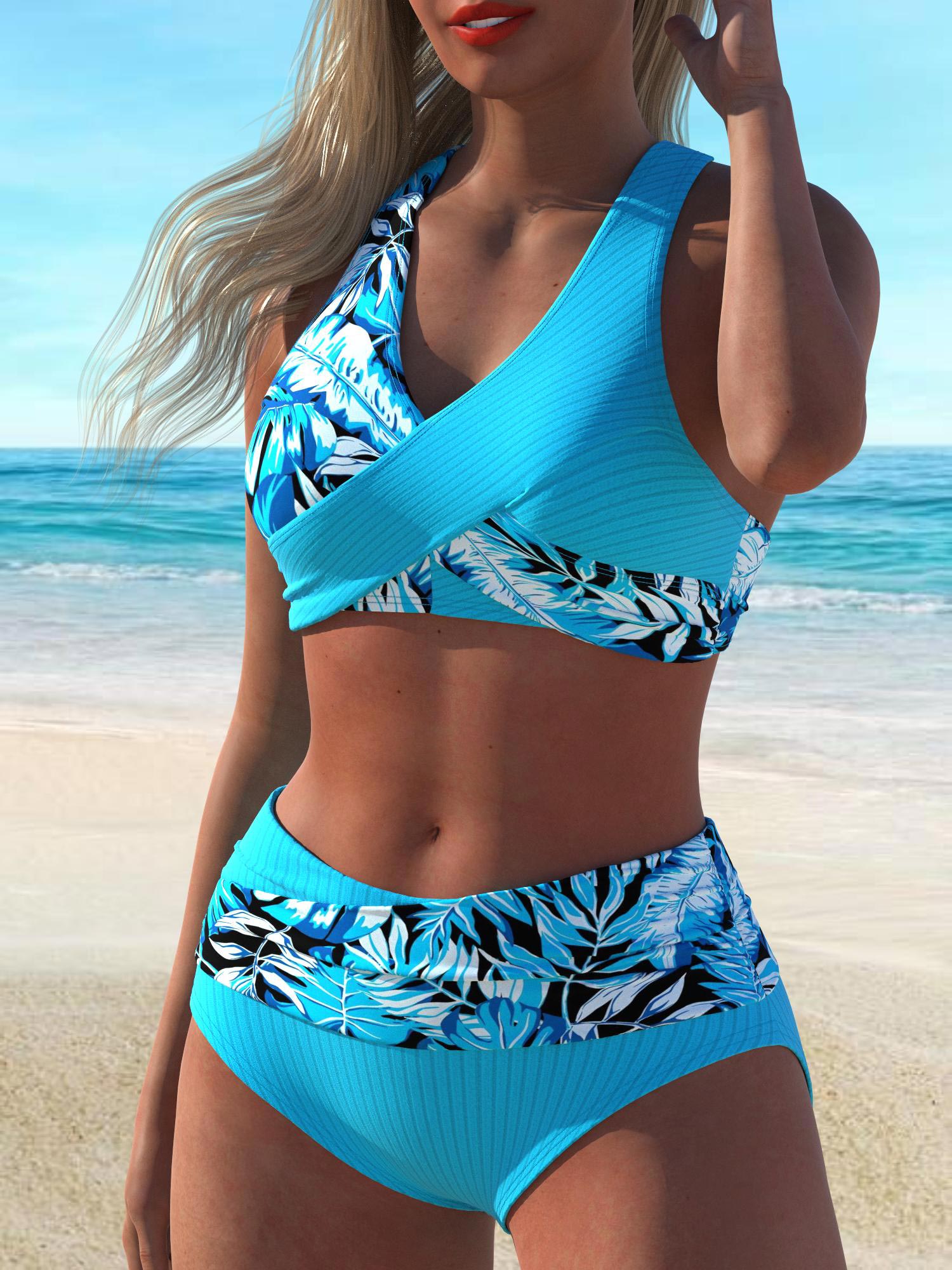 AKSA4-09Fashion Sexy Leaf Print Beach Ladies Bikini Swimsuit