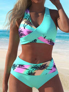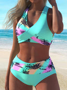 AKSA4-11Fashion Sexy Chest Cross Coconut Print Beach Women's Bikini Swimsuit
