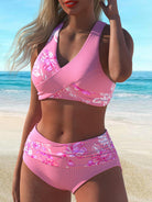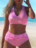AKSA4-13Fashion Sexy Chest Cross Random Print Beach Ladies Bikini Swimsuit