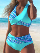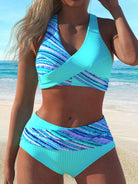 AKSA4-15Fashion Sexy Chest Cross Stripe Print Beach Women's Bikini Swimsuit