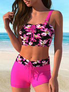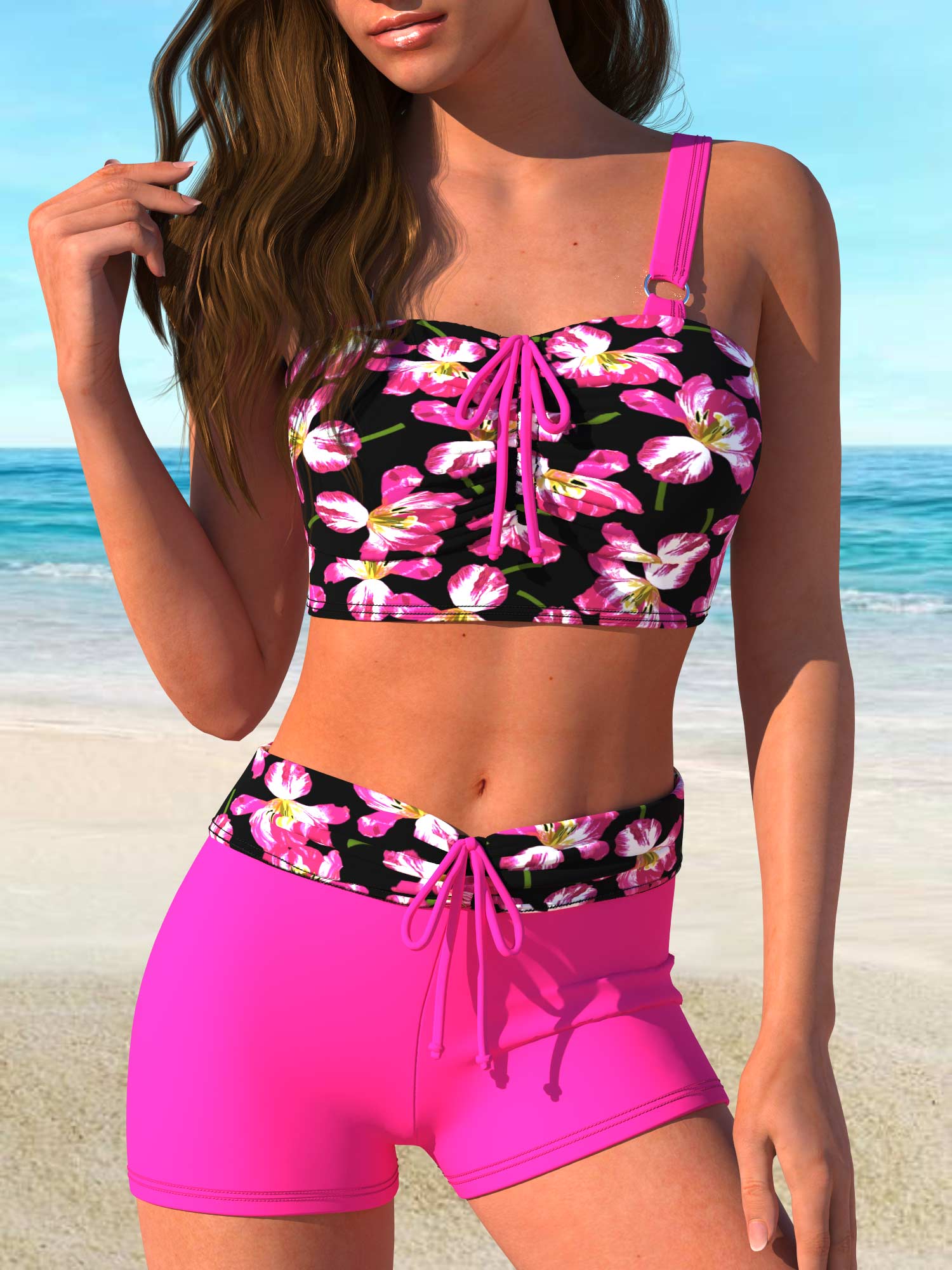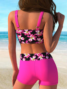 QKSA19-11Fashionable Rose Red Flower Beach Resort Women's Bikini Swimsuit