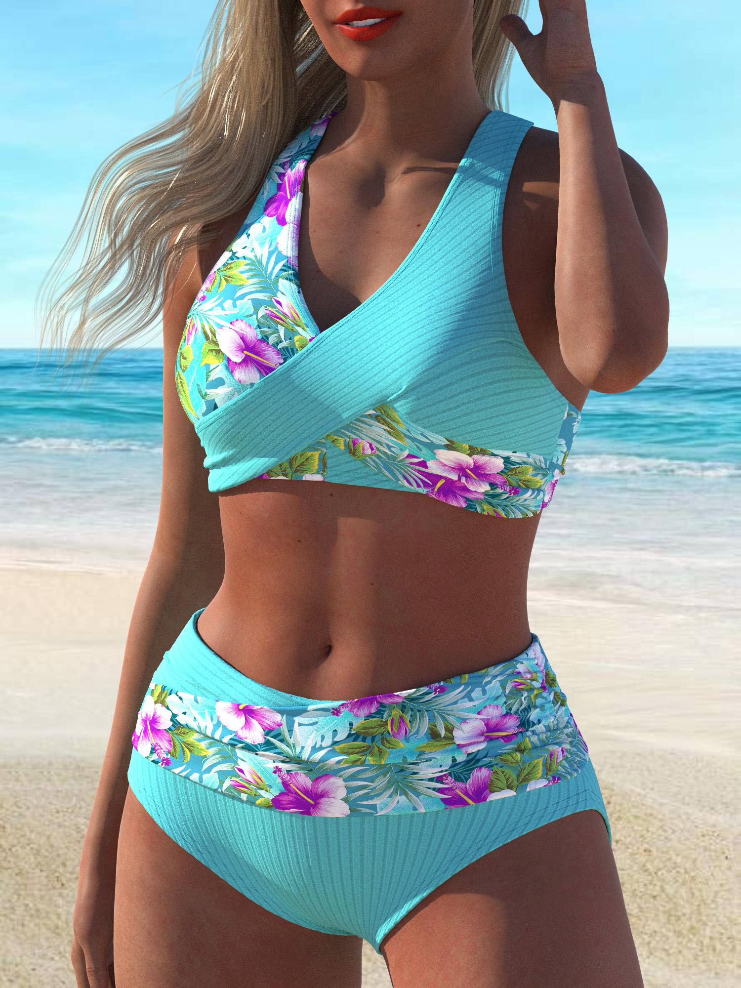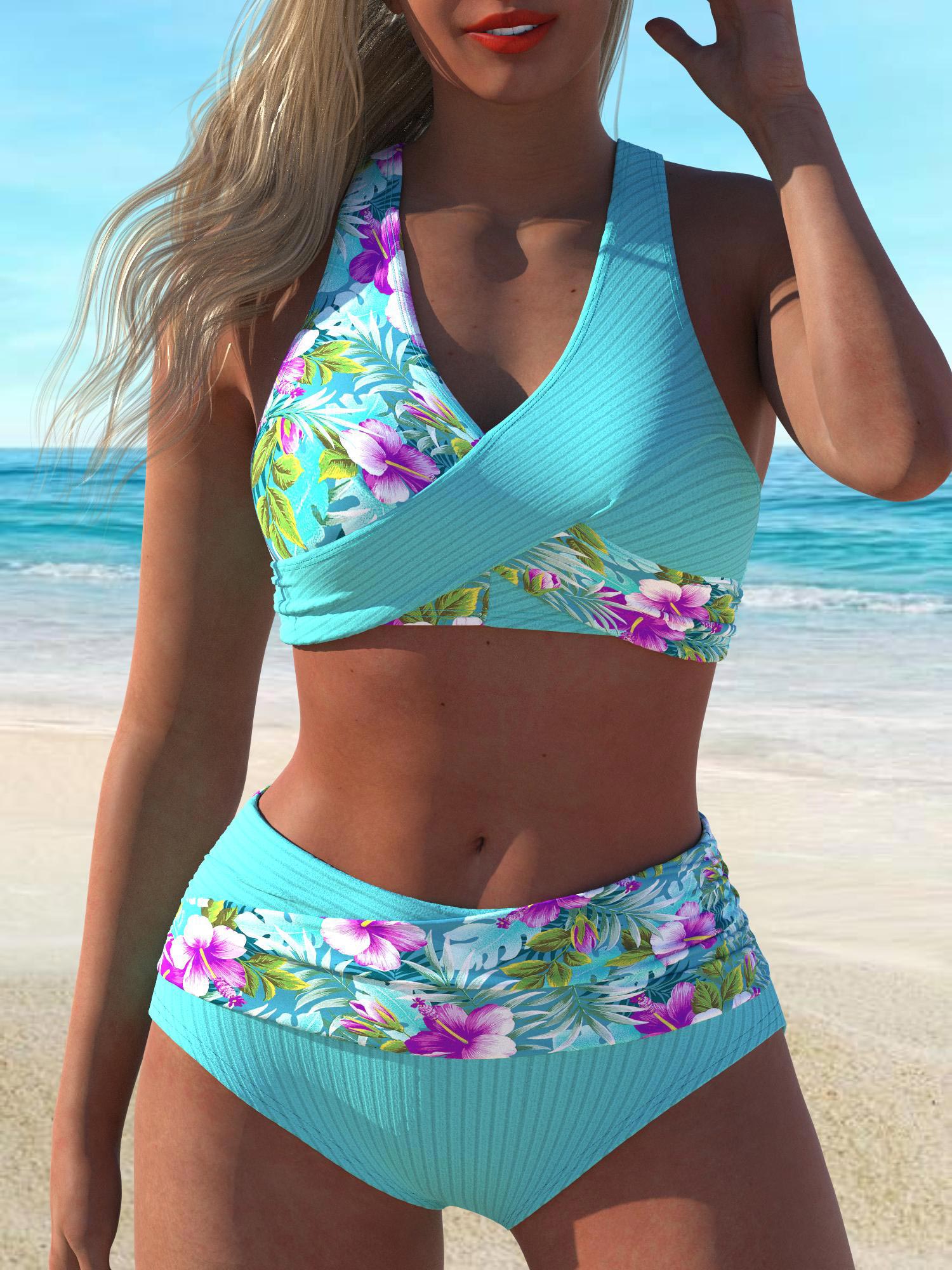 AKSA4-03Fashion Crossover Small Floral Print Party Women's Bikini Swimsuit