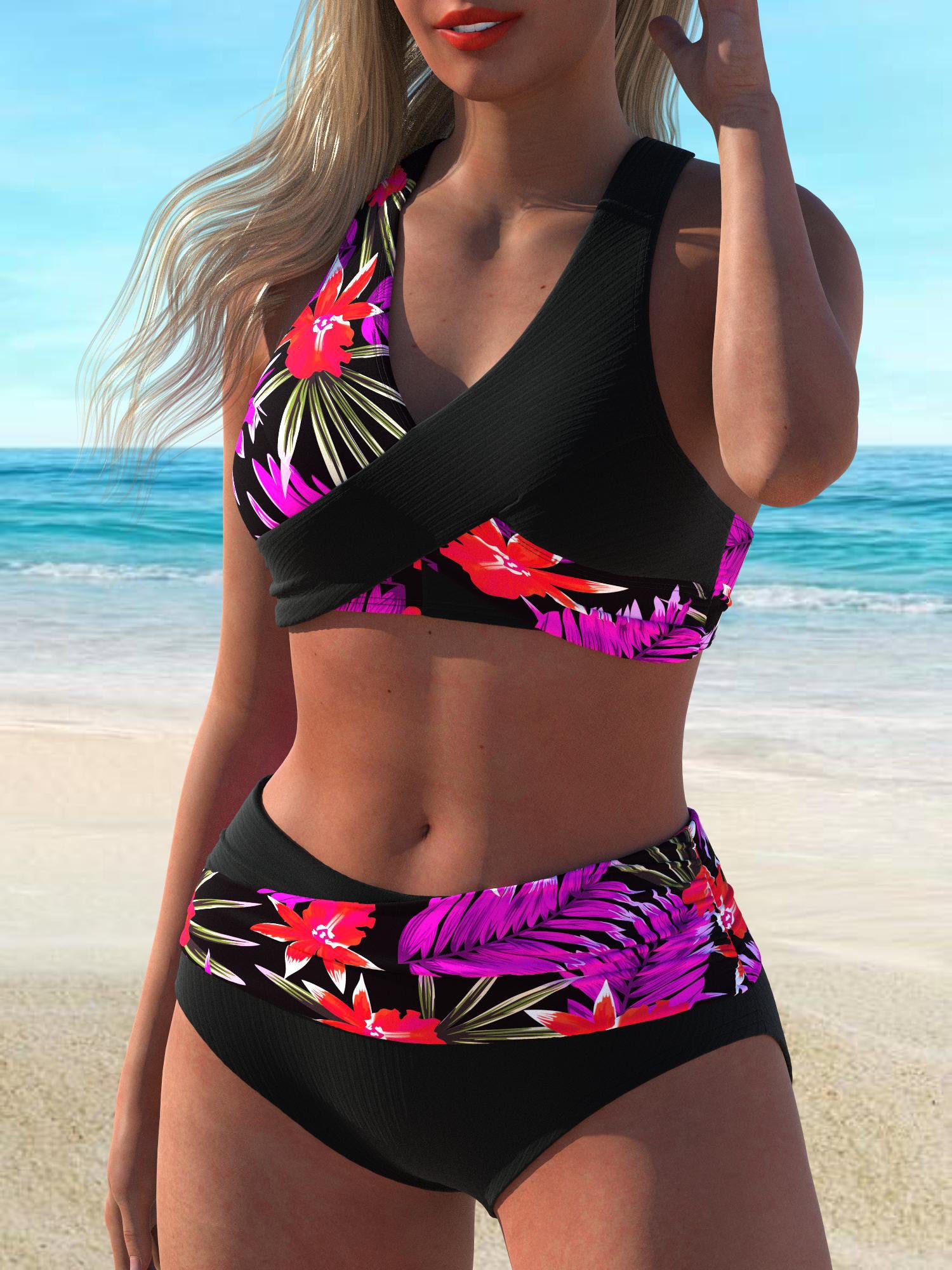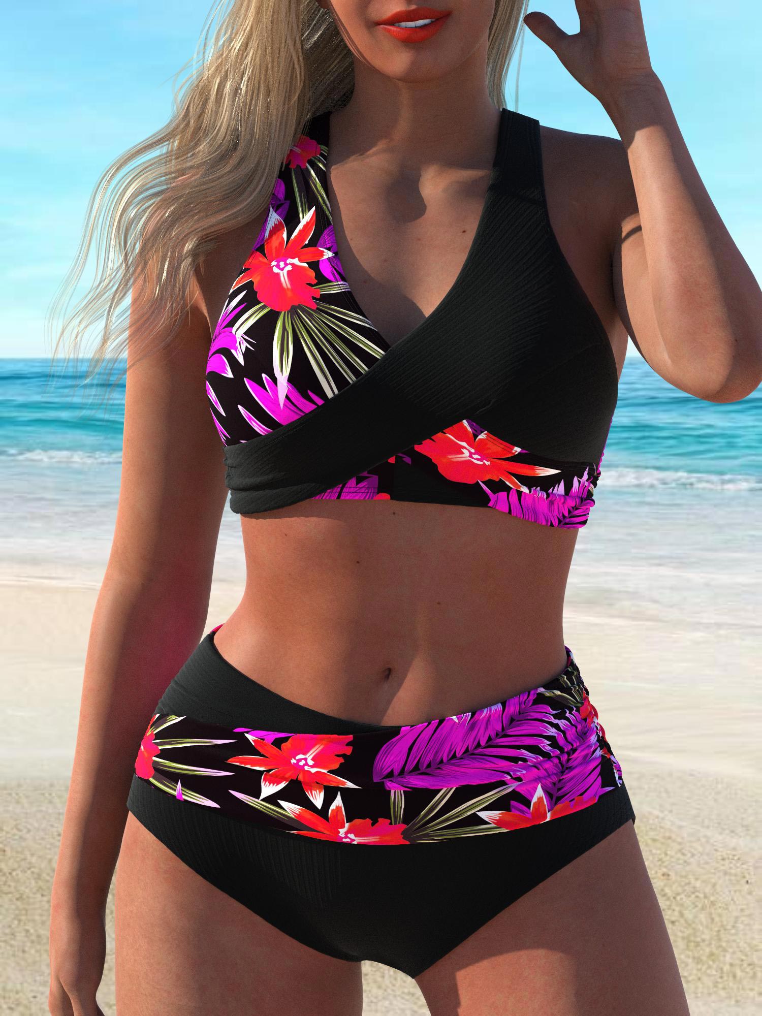 AKSA4-04Fashion Sexy Red Floral Print Beach Party Women's Bikini Swimsuit