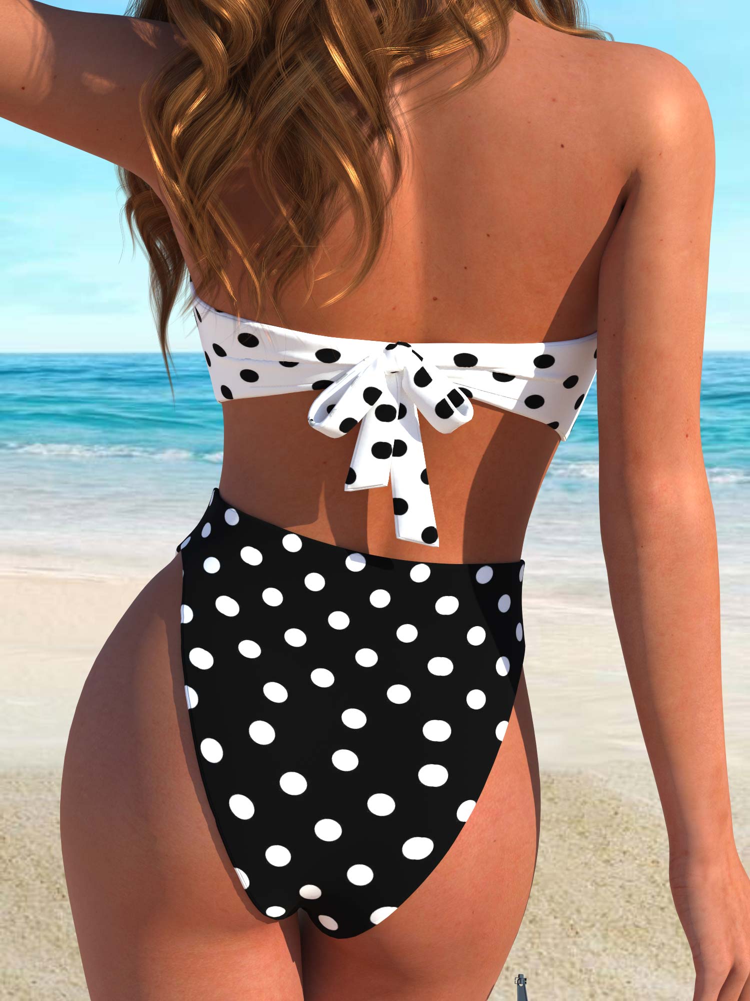 QKSA38-06Fashionable black and white polka dot sexy beach vacation women's bikini swimsuit