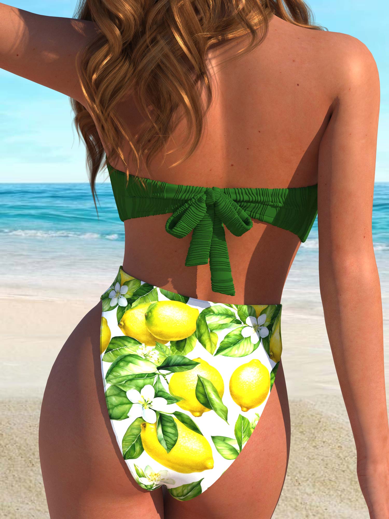 QKSA38-09Fashionable Lemon Pattern Sexy Beach Vacation Women's Bikini Swimsuit