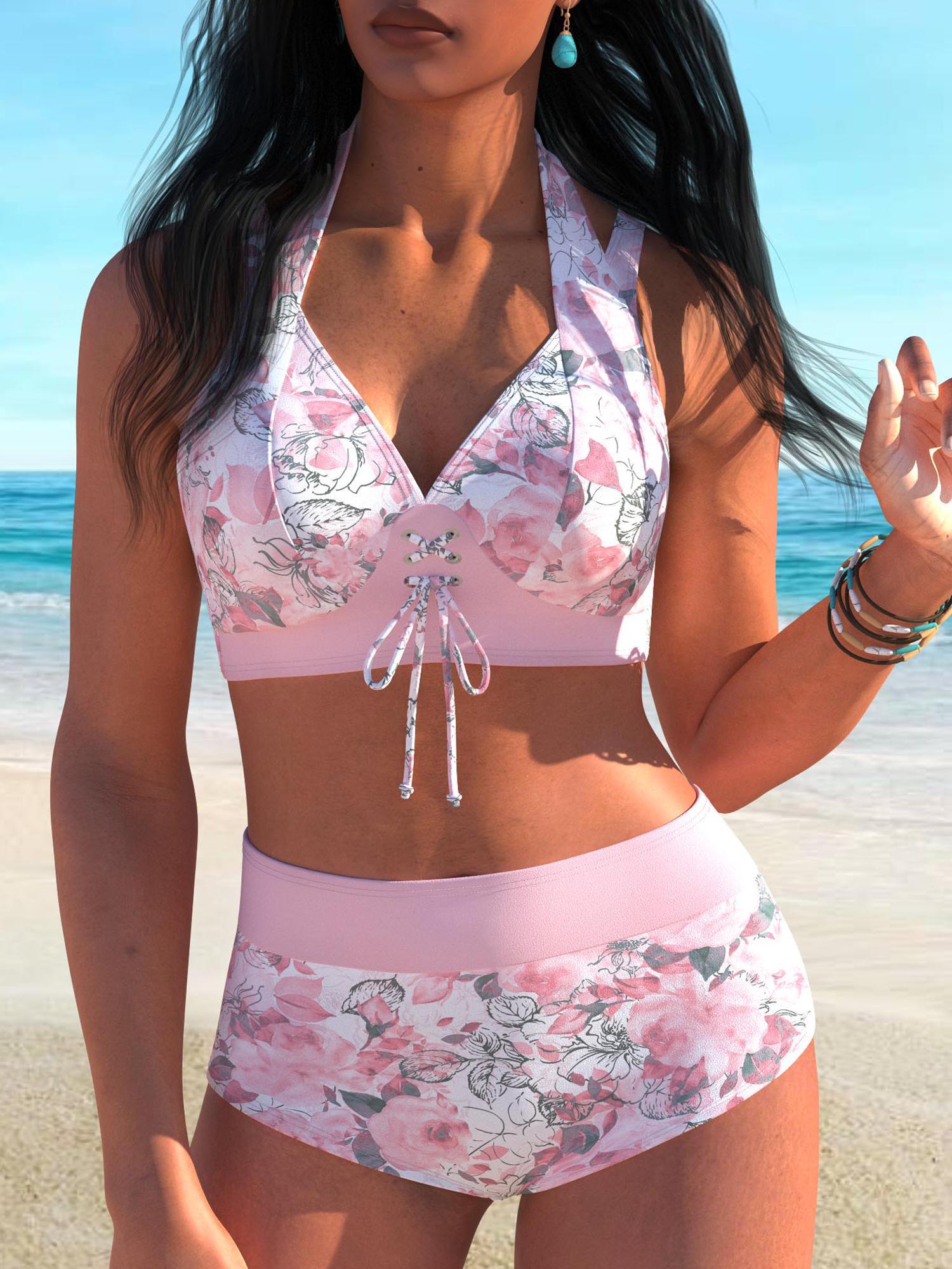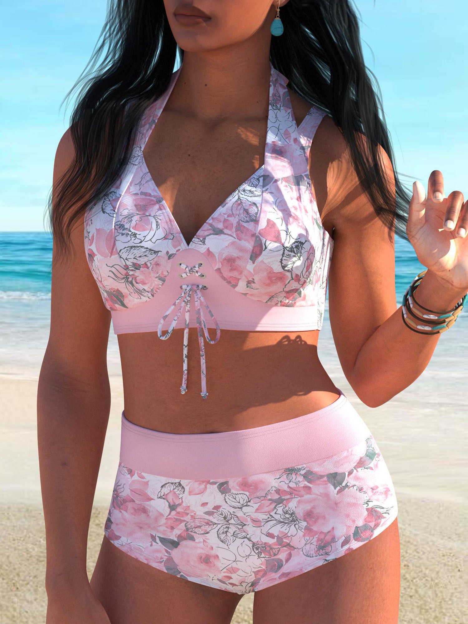 QKSA53-24Fashionable pink cherry blossom beach vacation women's bikini swimsuit