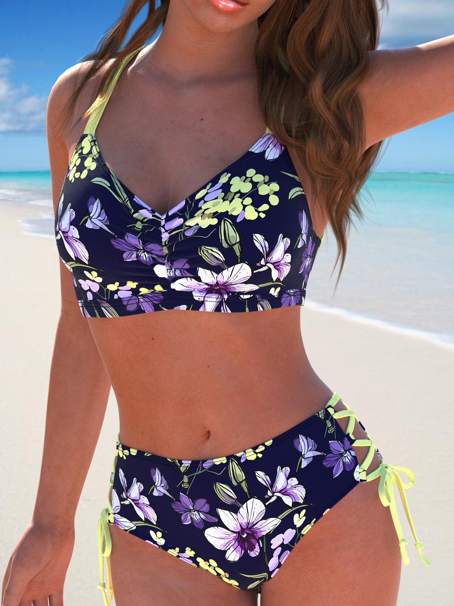 QKSA788-20Fashion Sexy Floral Print Tie Beach Vacation Women's Bikini Swimsuit