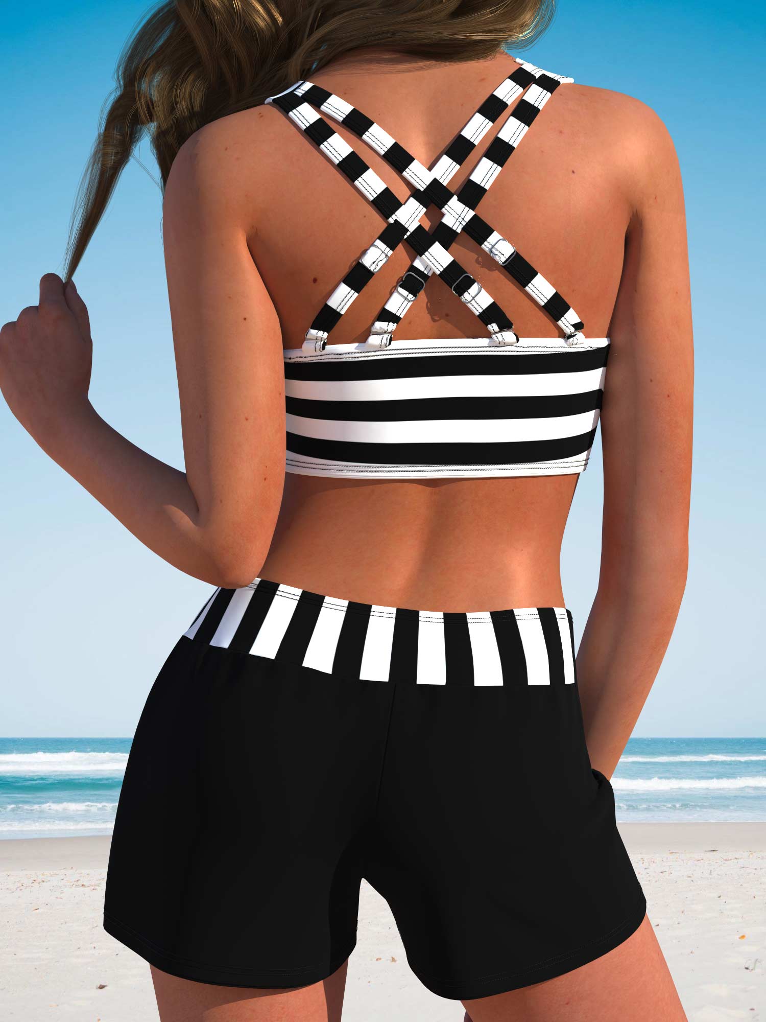 QKSB53-09Fashion Floral Striped Printed Beach Party bikini swimsuit