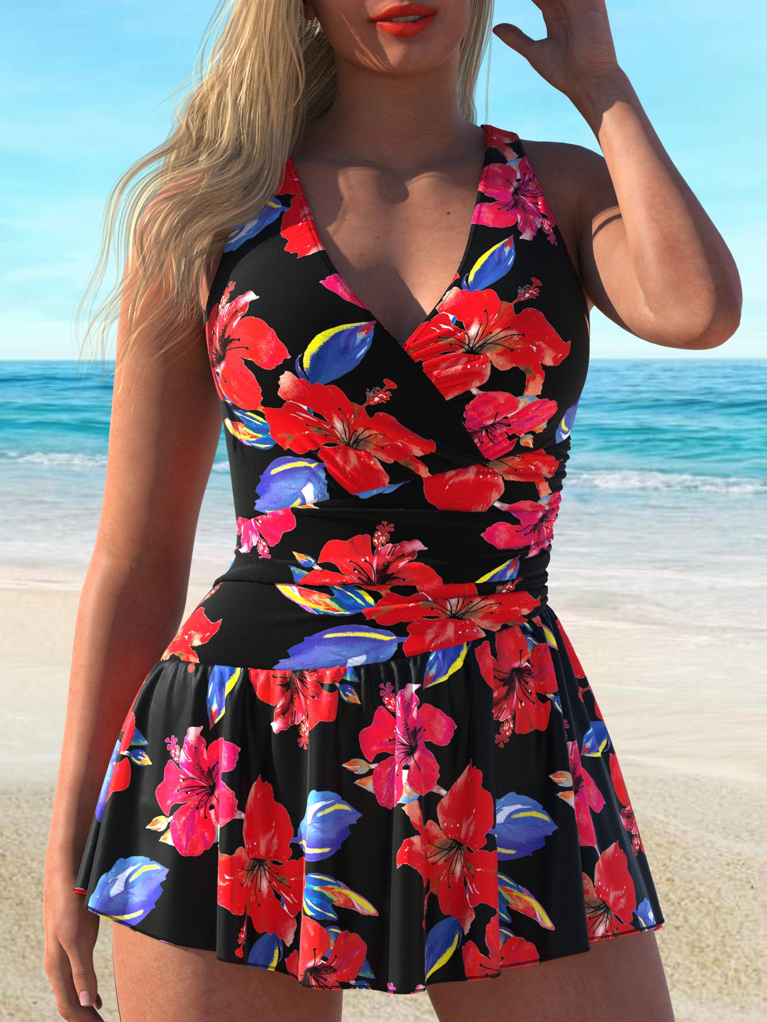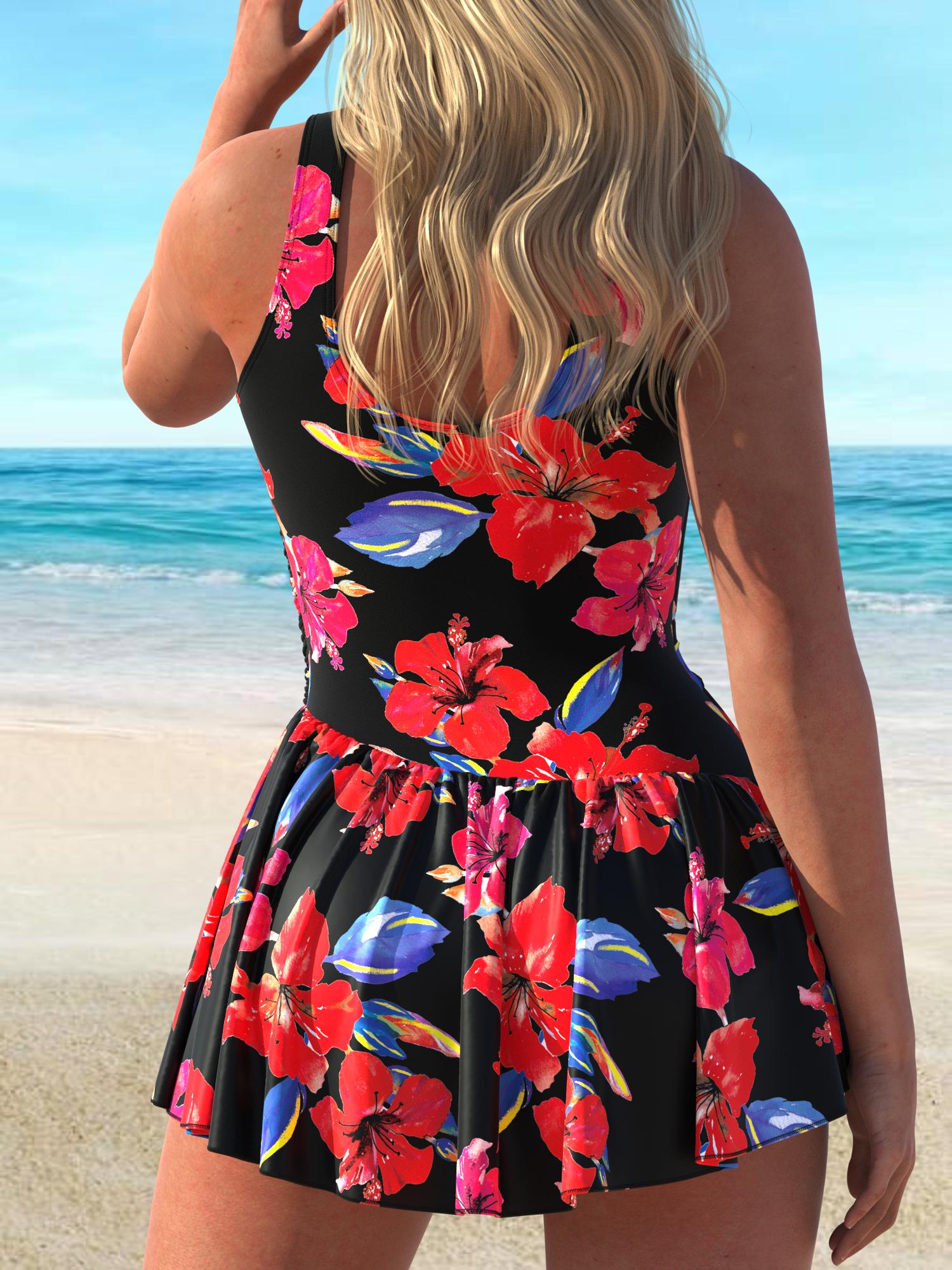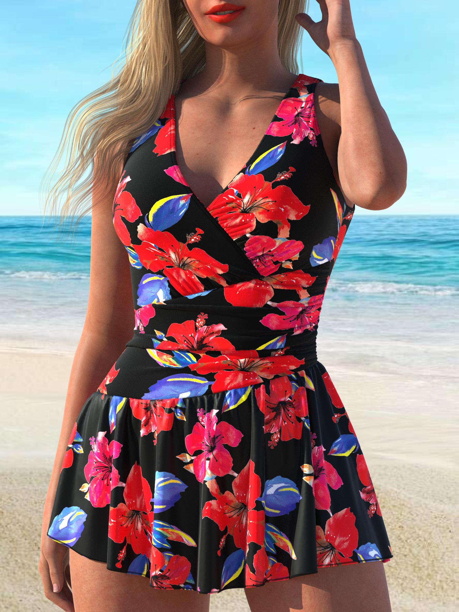QKSA10-03Fashion Printed Vacation Beach Ladies One-piece Swimsuit