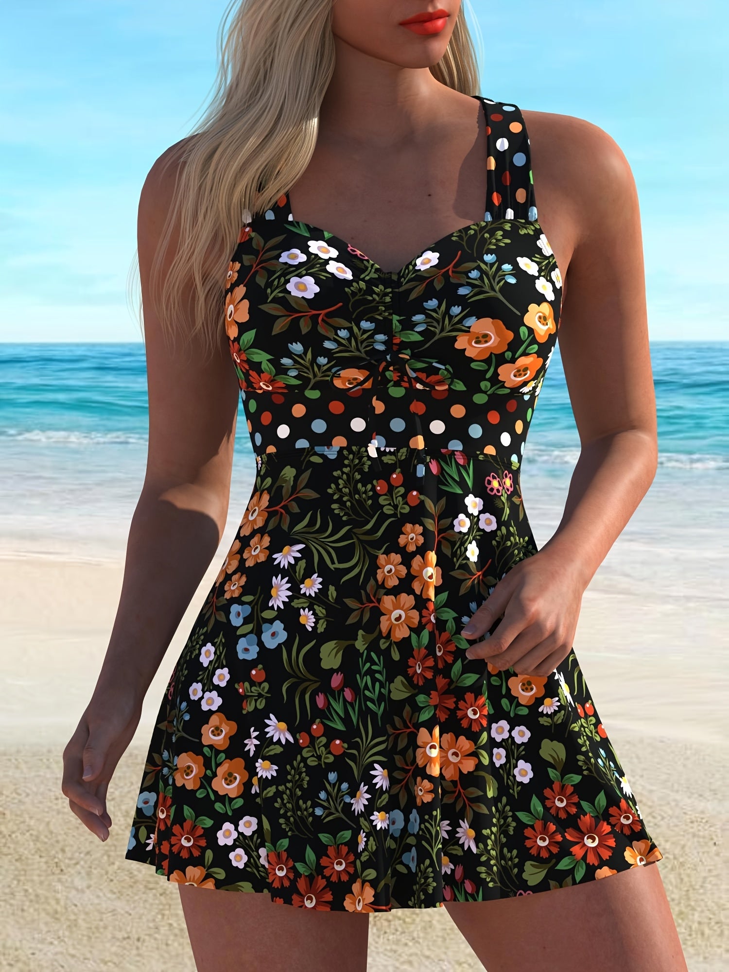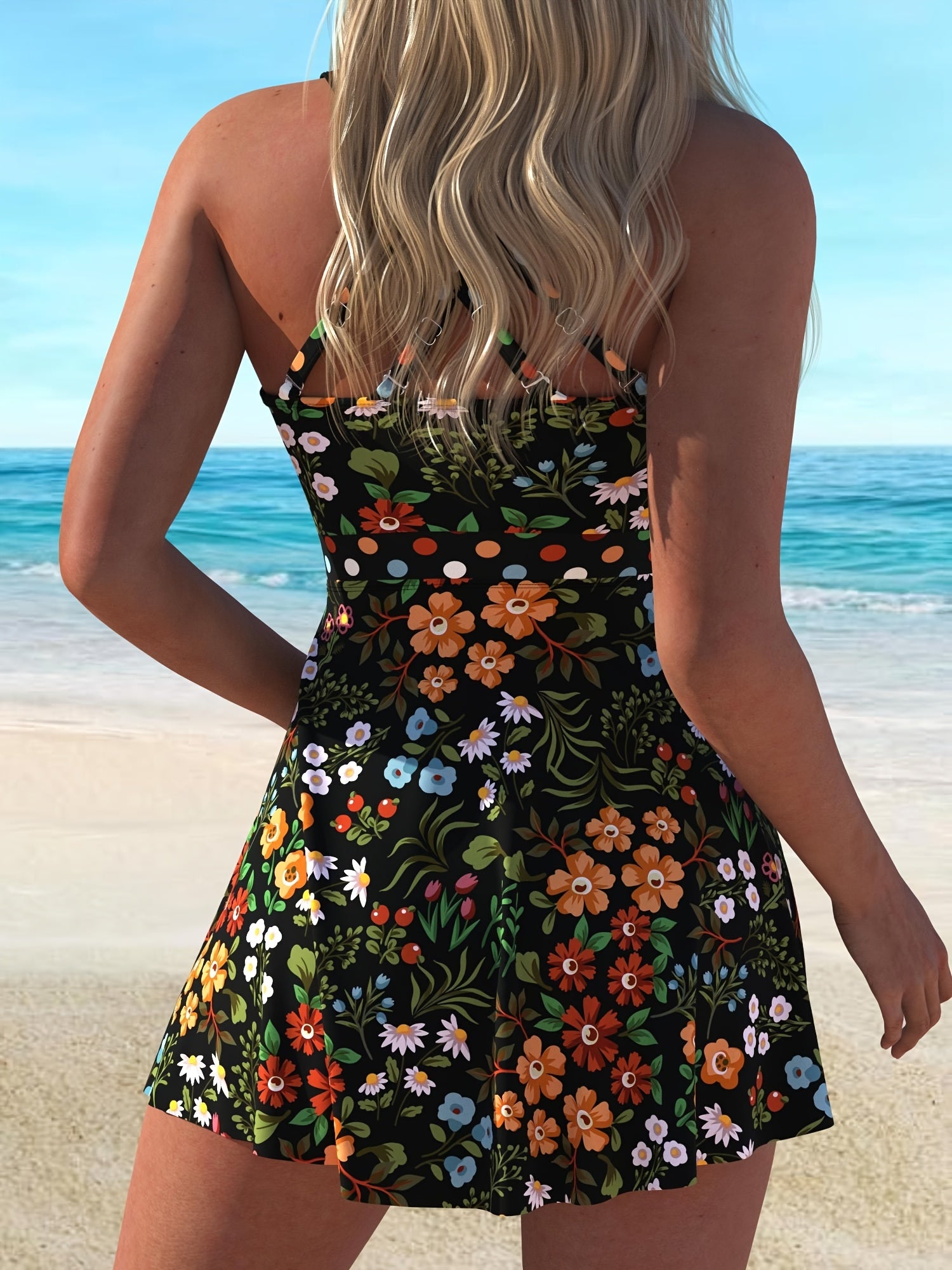 QKS69-12 Fashionable floral print casual vacation women's Tankini swimsuit set