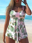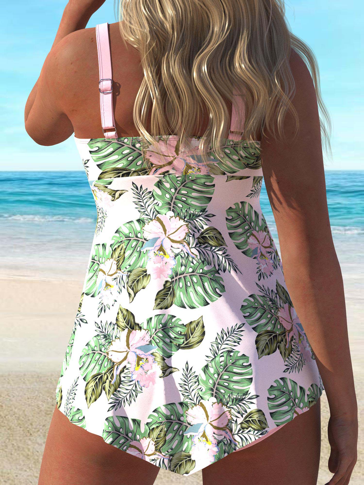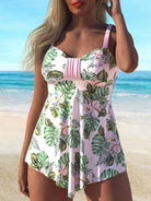 QKSA11-15Fashion Leaf Print Beach Vacation Women's Tankini Swimsuit