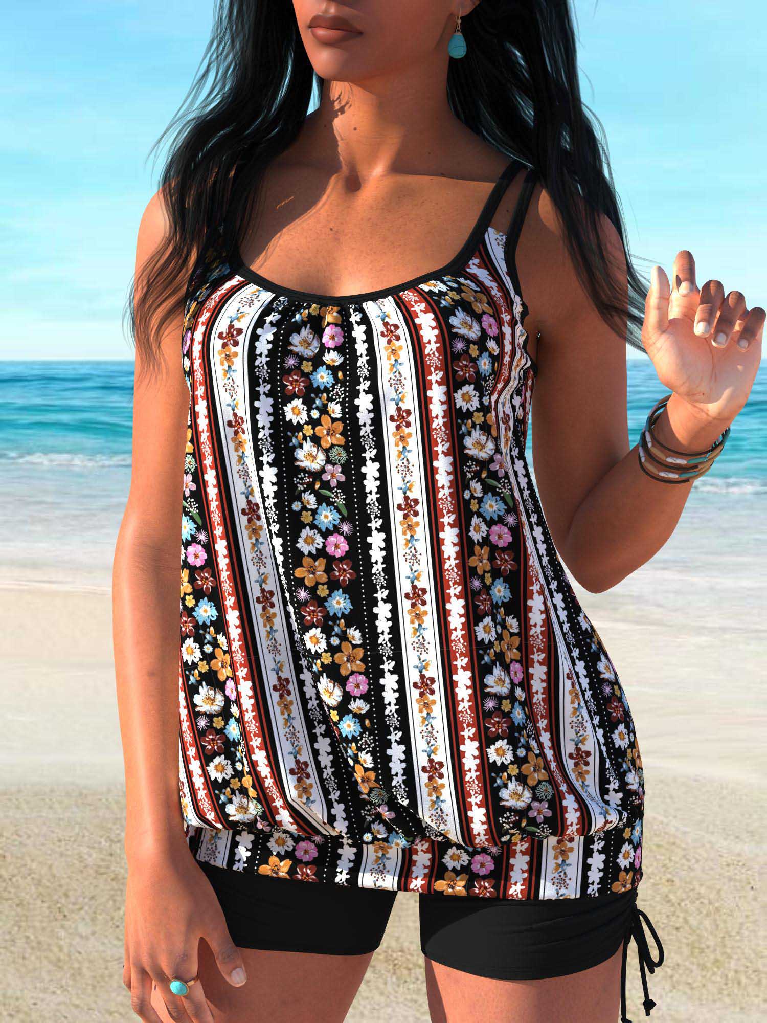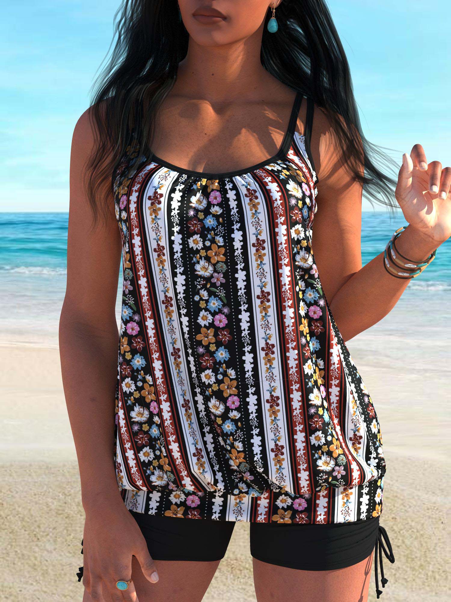 QKSA42-01Fashion striped beach vacation women's Tankini swimsuit