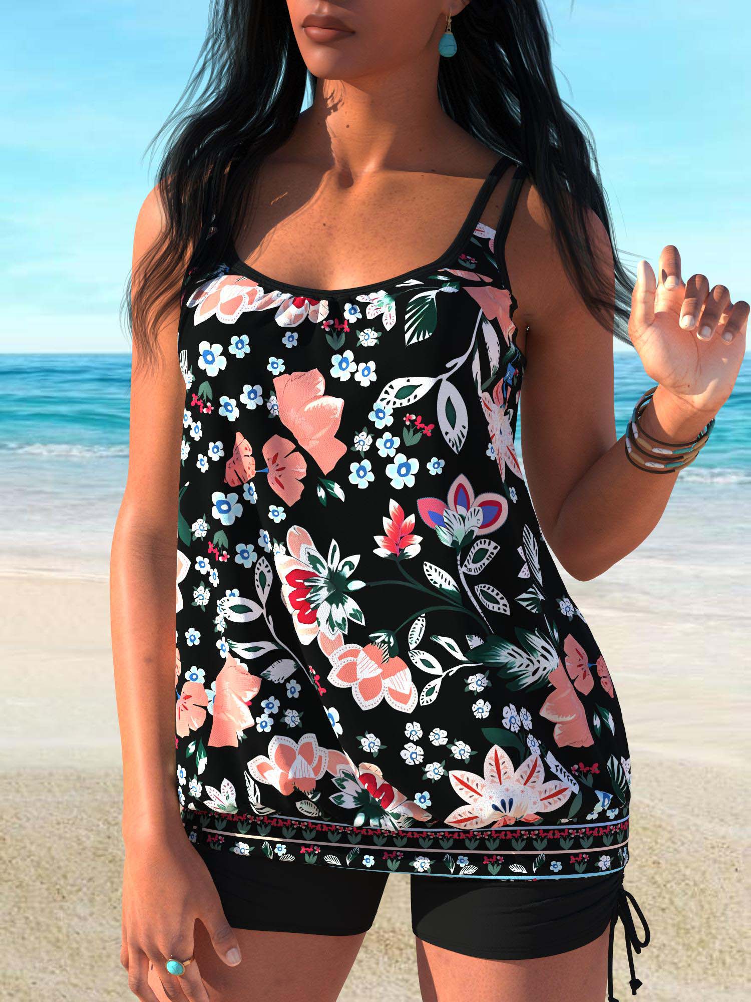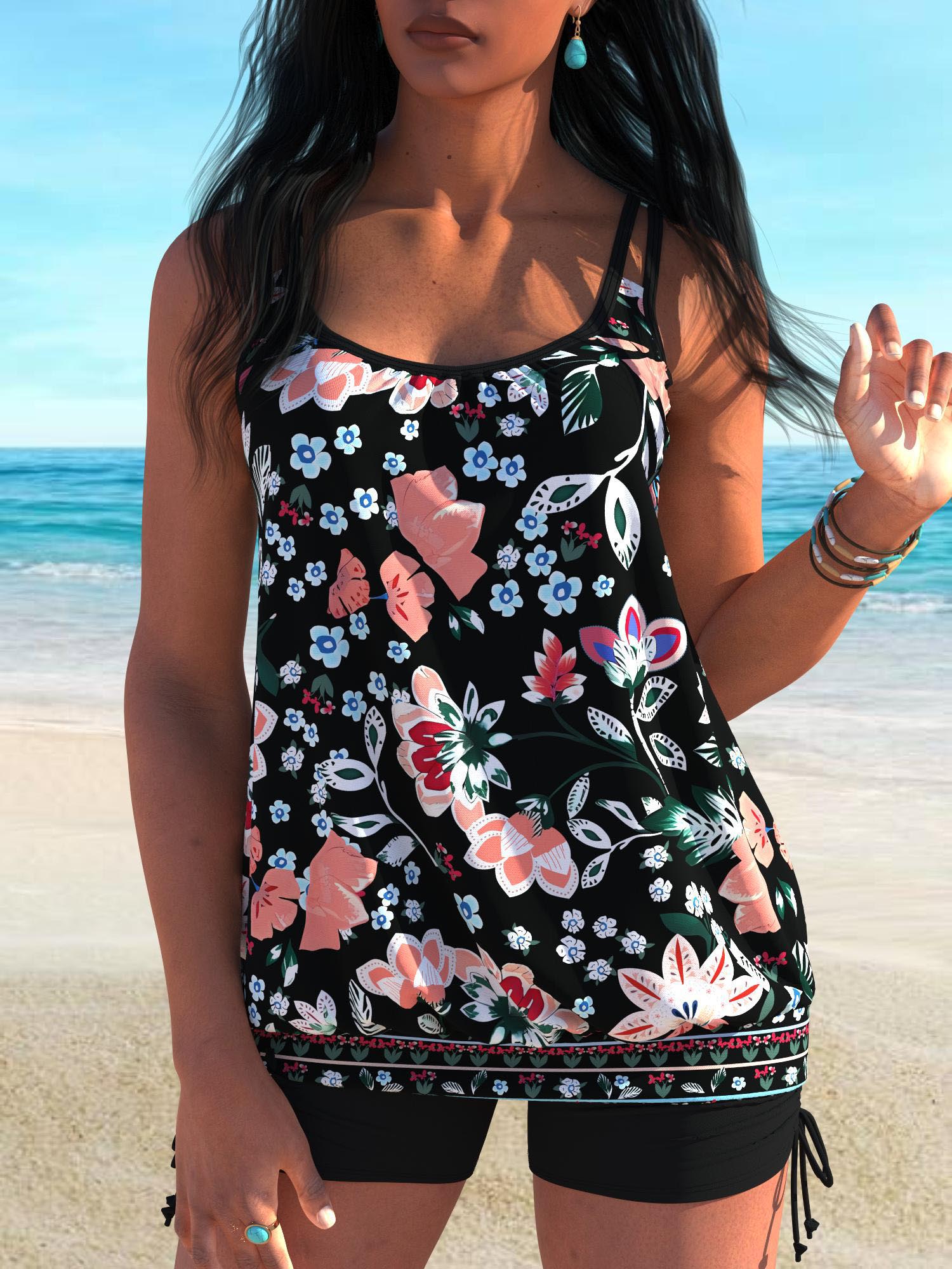 QKSA42-09Fashion Printed Slim Women's Tankini Swimsuit