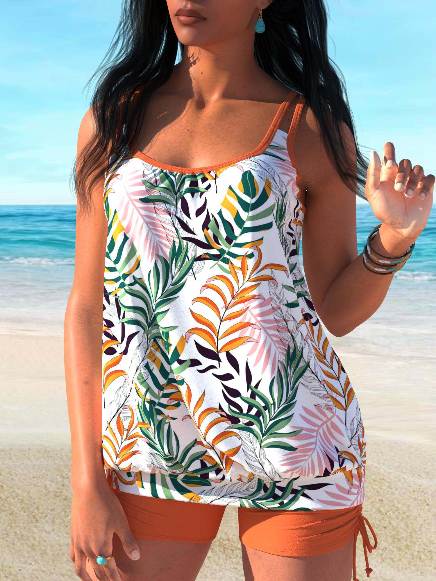 QKSA42-16Fashion Printed Slim Women's Tankini Swimsuit