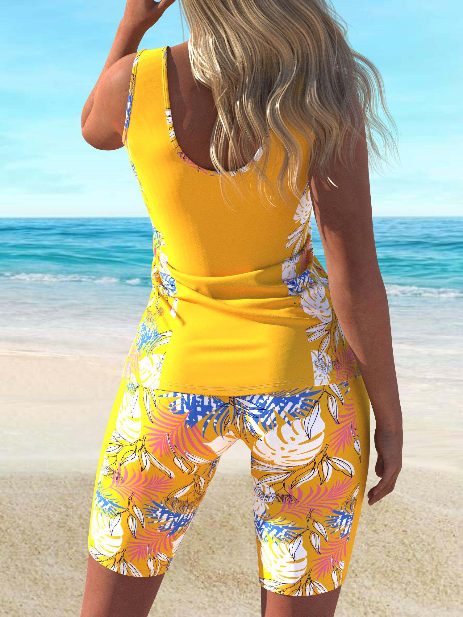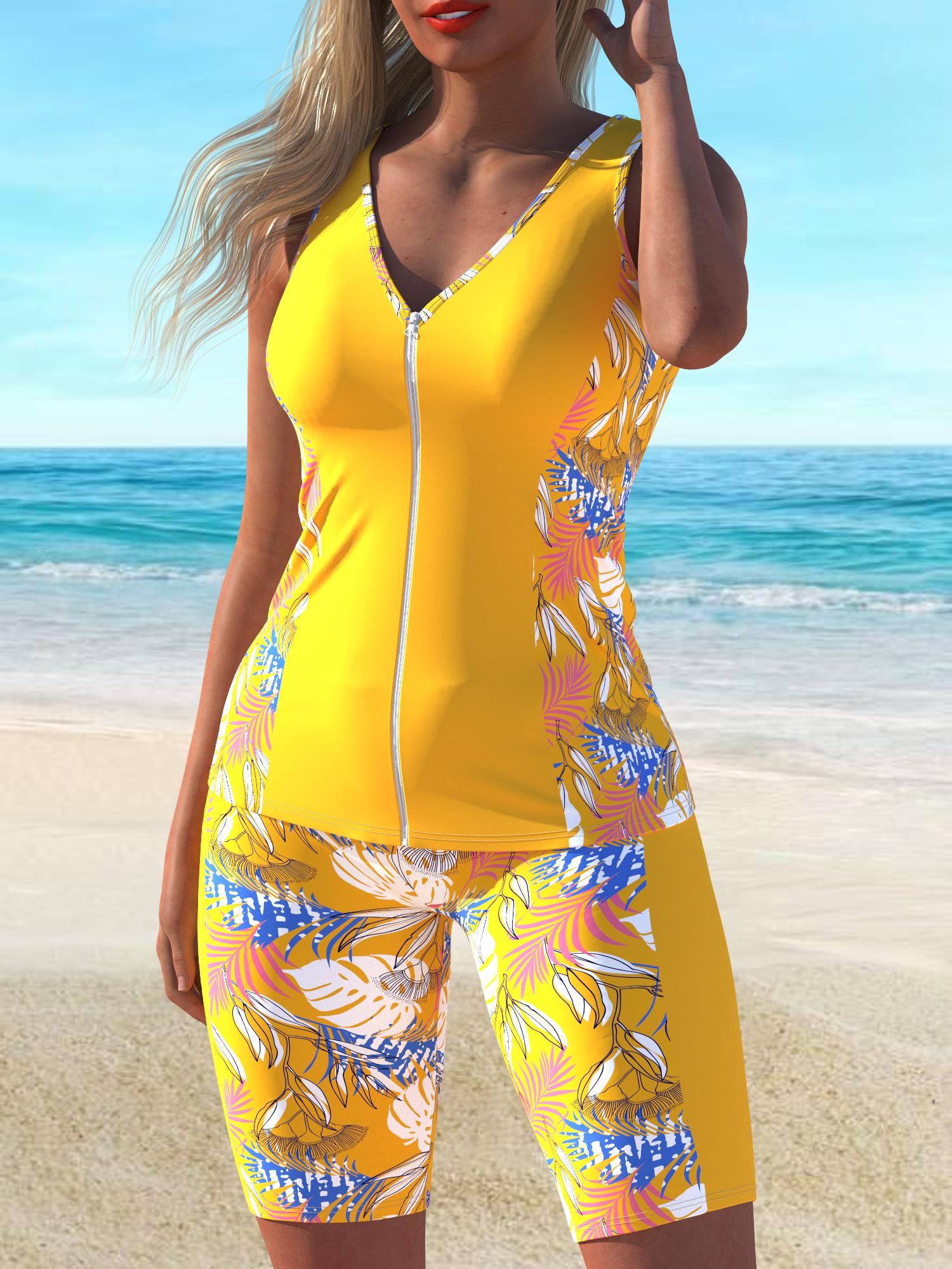 QKSA45-16Fashionable Leaf Printed Beach Ladies Tankini Swimsuit