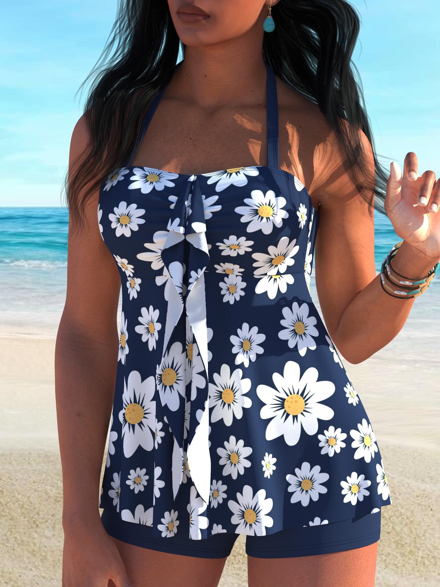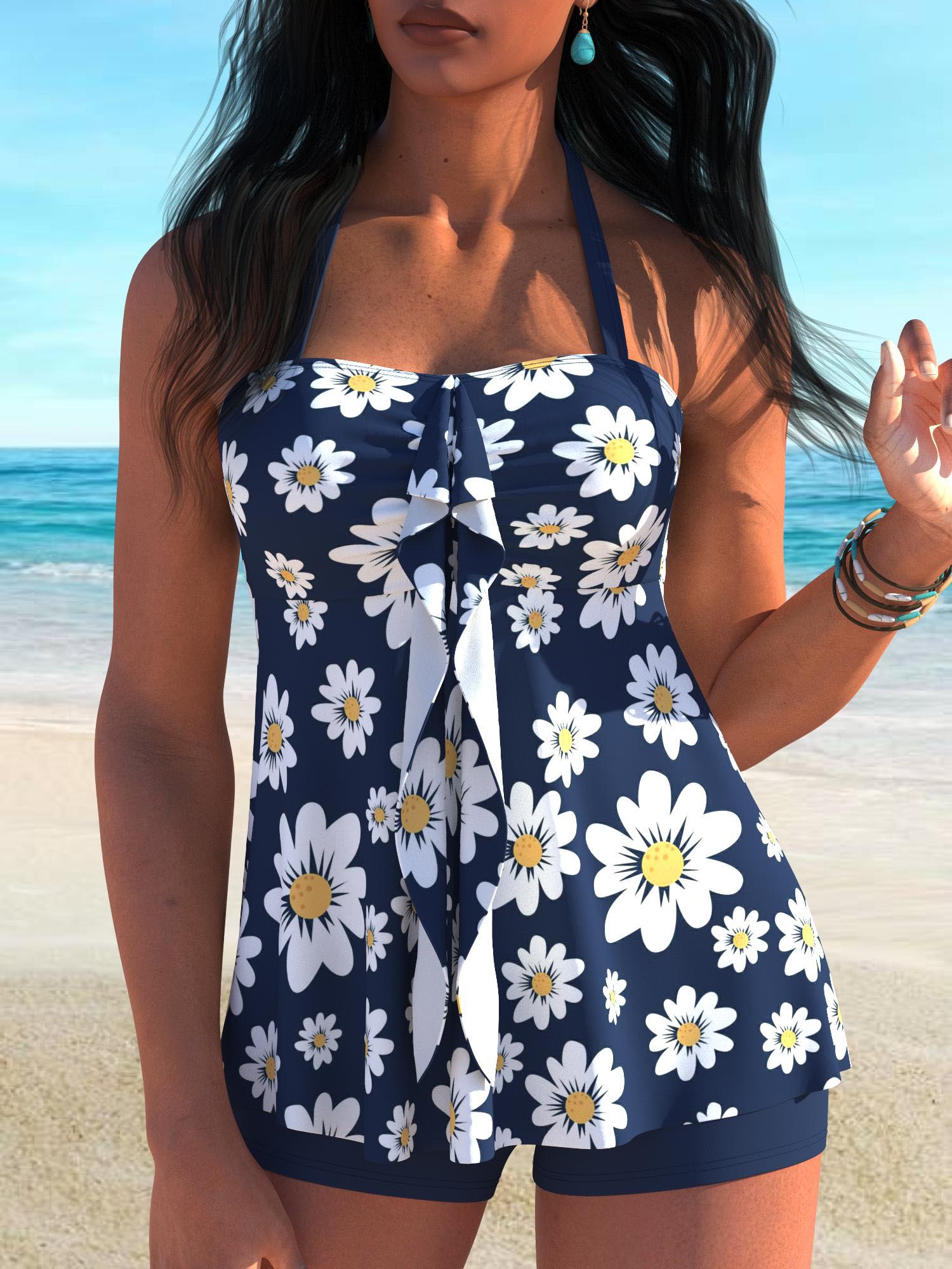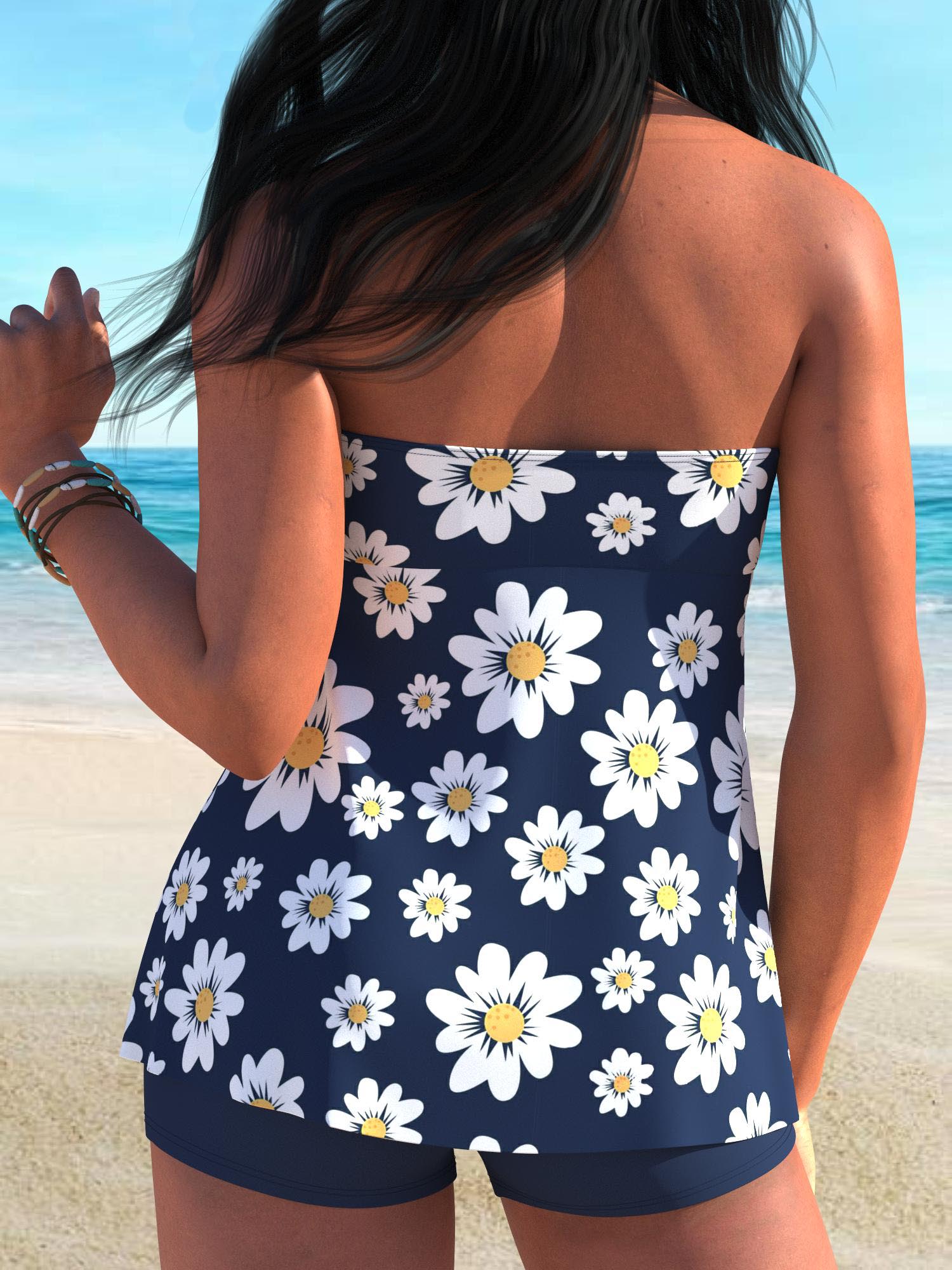 QKSA51-20Fashionable Flower Sexy Beach Vacation Women's Tankini Swimsuit