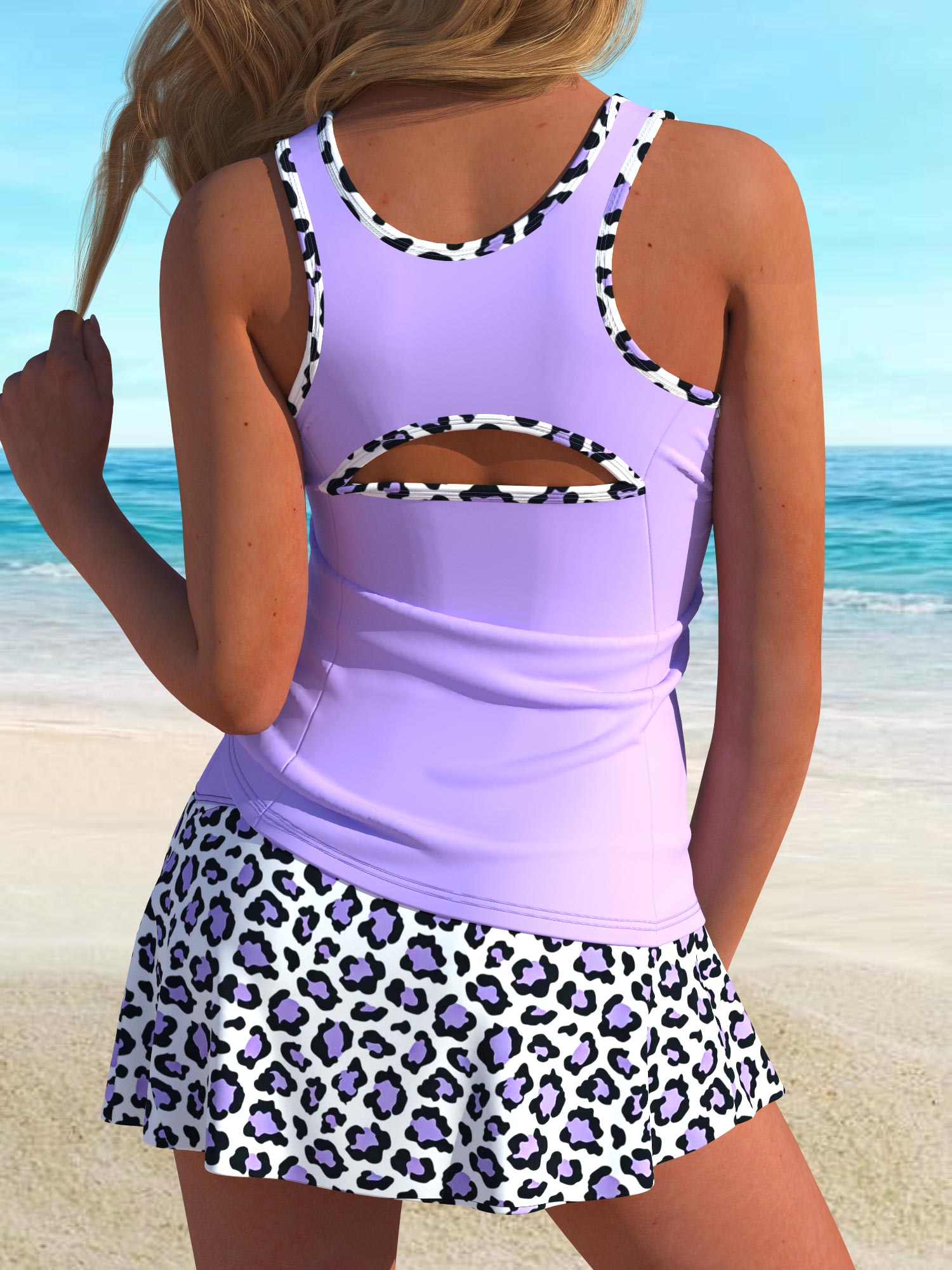 QKSA555-06Fashion Purple Random Printed Beach Party Tankini Swimsuit