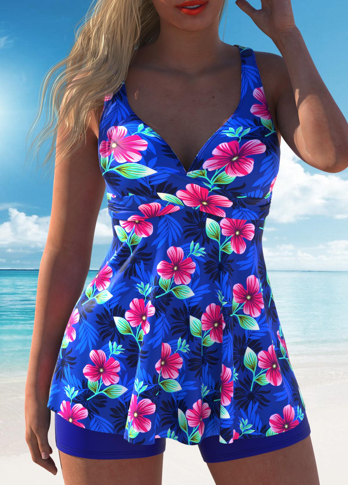QKSA56-02Fashionable floral print beach women's tankini swimsuit