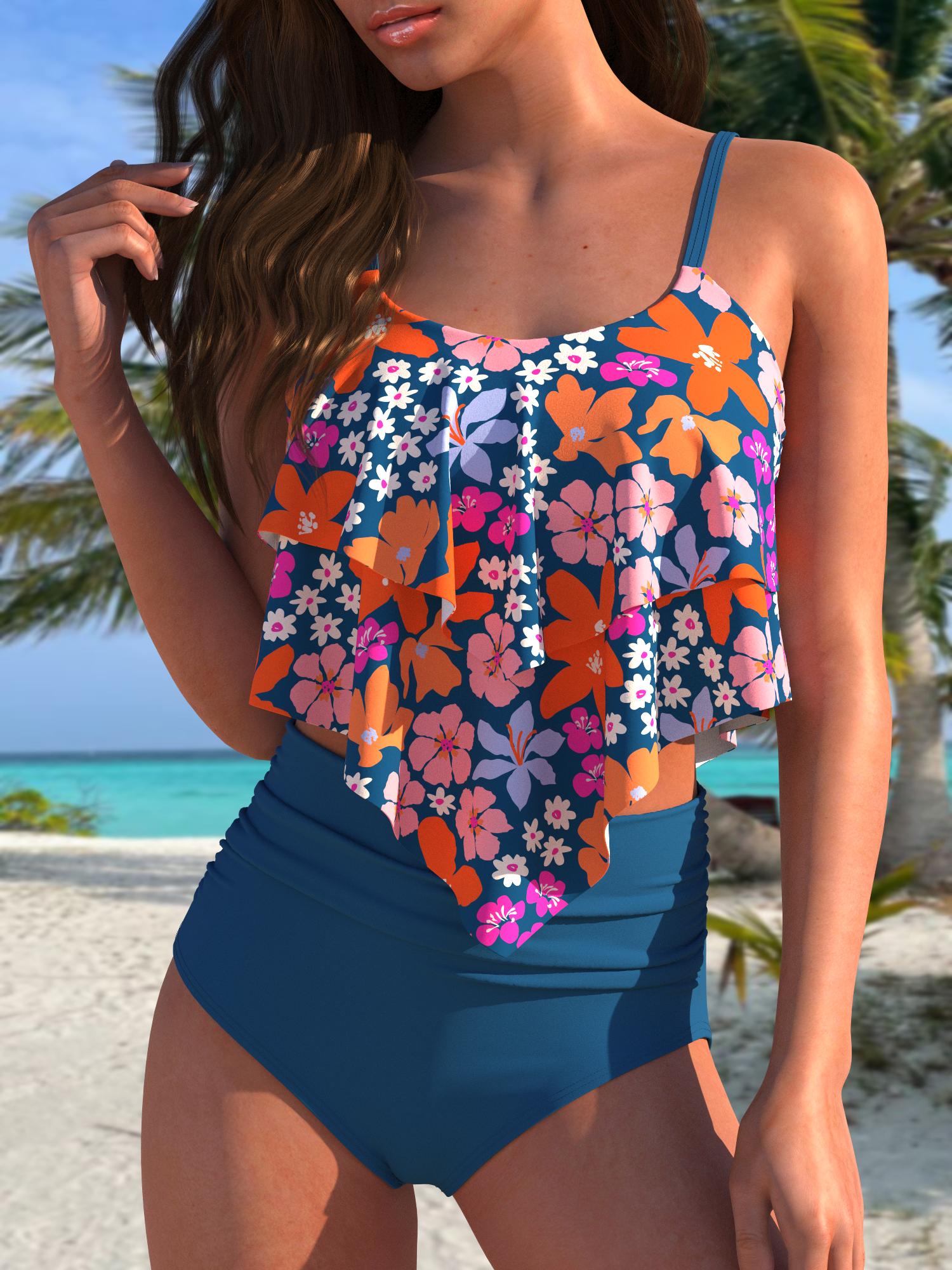 QKSA581-09Fashion Navy Blue Random Print Beach Party Women's Bikini Swimsuit