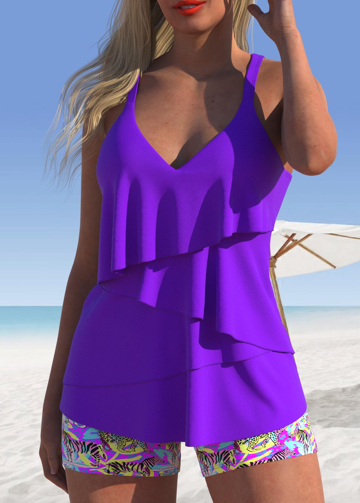 QKSA6-19Fashion Women's V-Neck Triple Skirt Animal Print Tankini Swimsuit