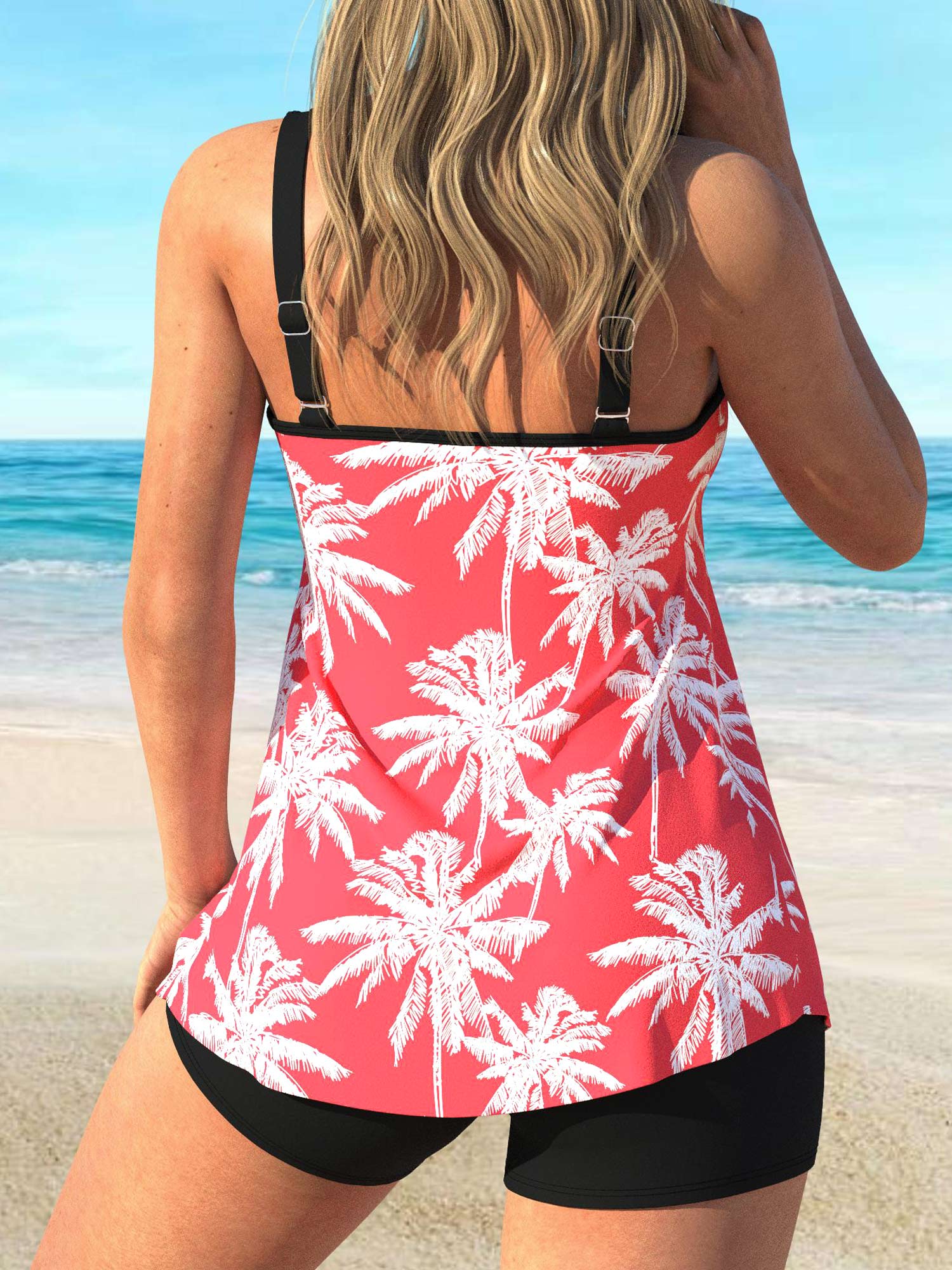 QKSA61-03Fashionable coconut tree print beach women's tankini swimsuit