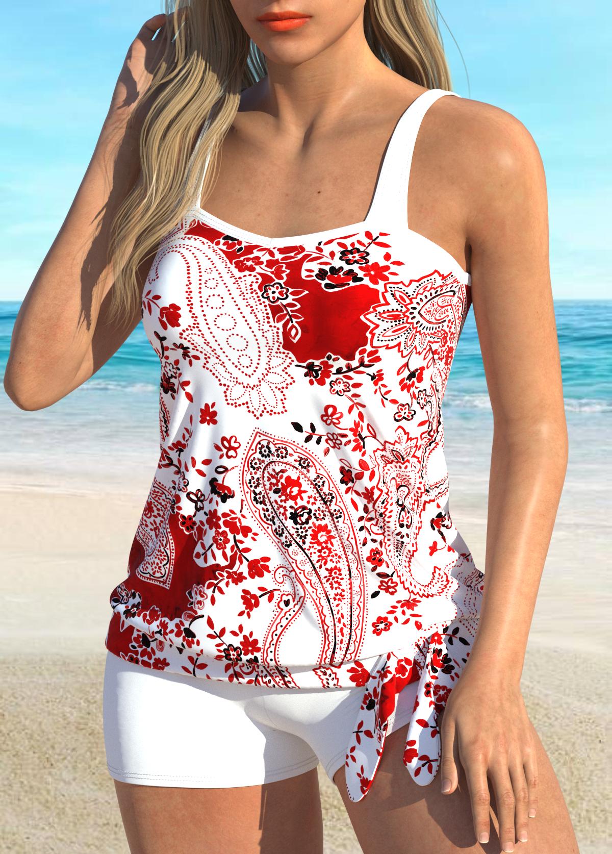 QKSA62-07Fashionable floral print beach party women's tankini swimsuit