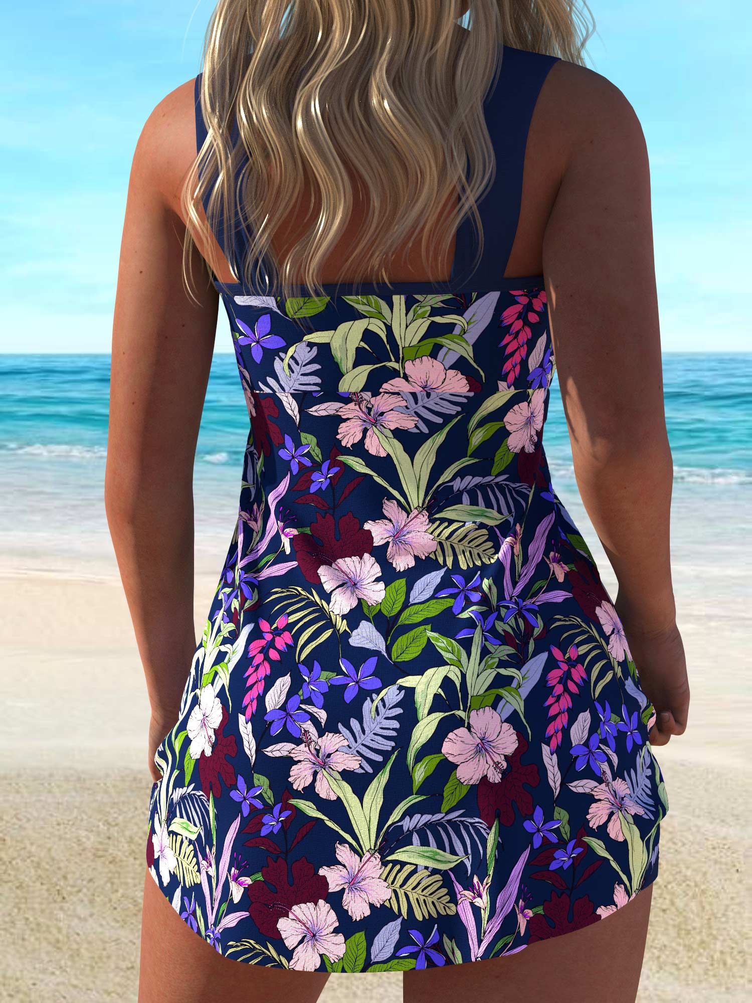 QKSA7-02Fashion Printed Beach Vacation Women's Tankini Swimsuit