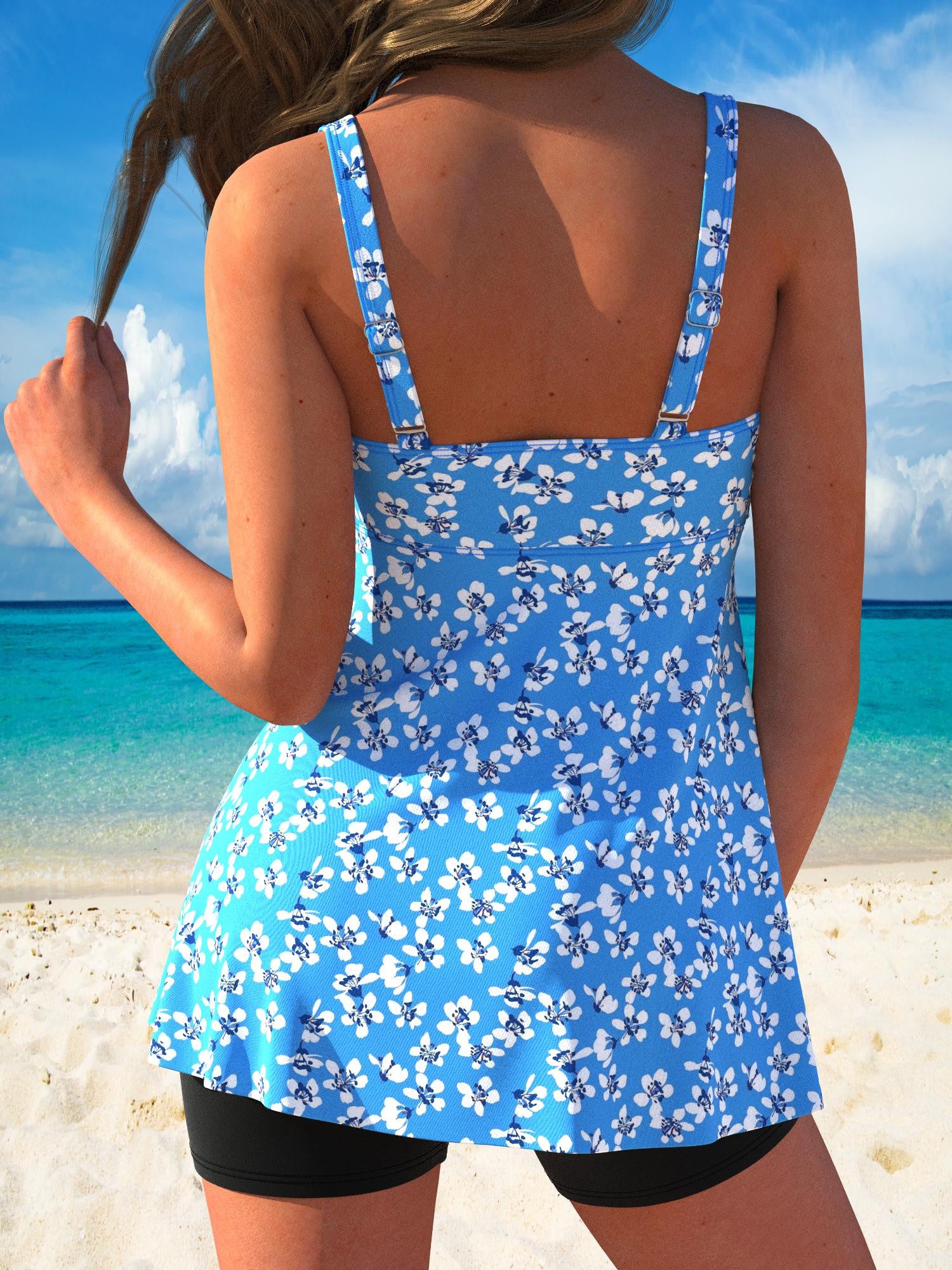 QKSA80-23Fashion Loose Small Floral Printed Beach Ladies Tankini Swimsuit