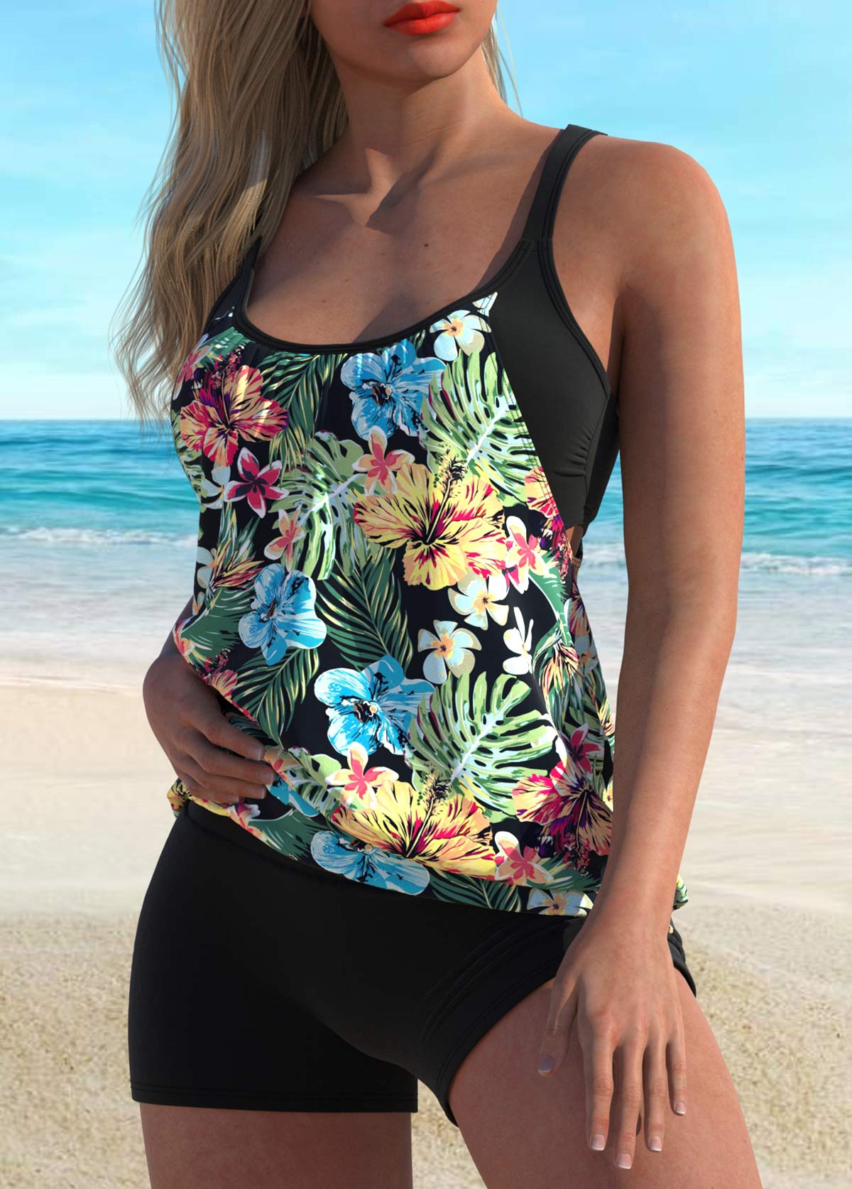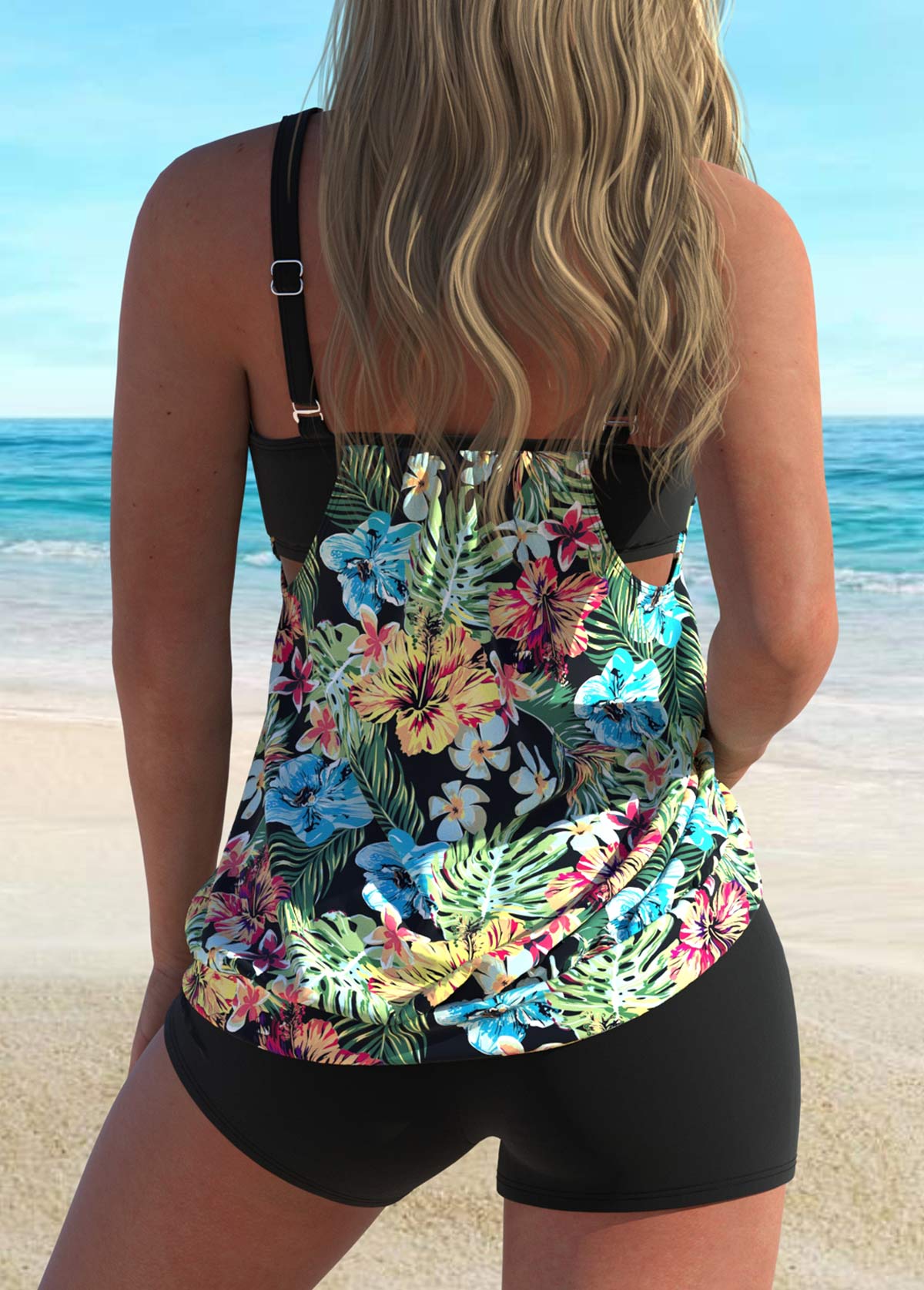 QKS01-21Fashion Printed Vacation Beach Ladies Tankini Swimsuit