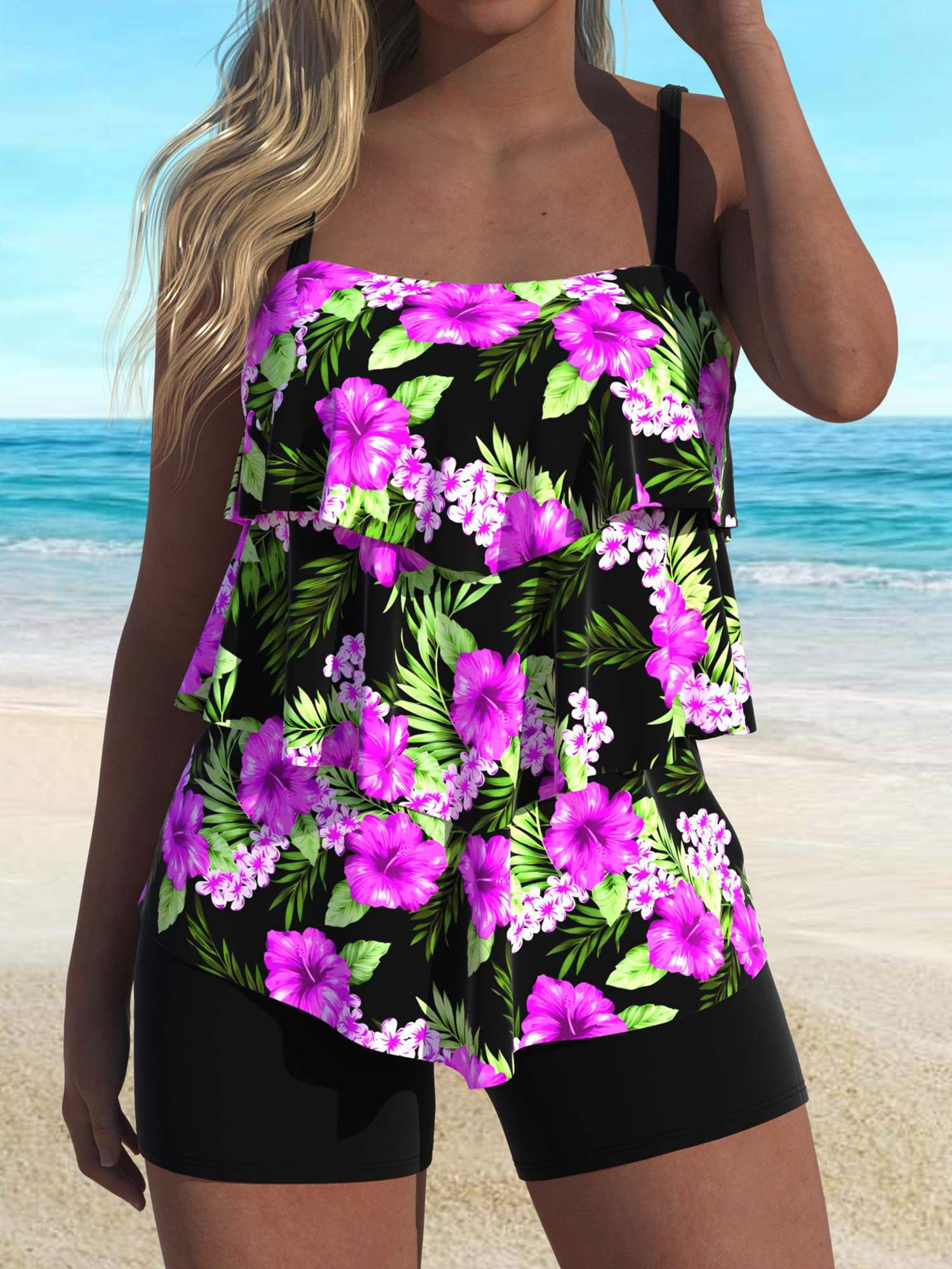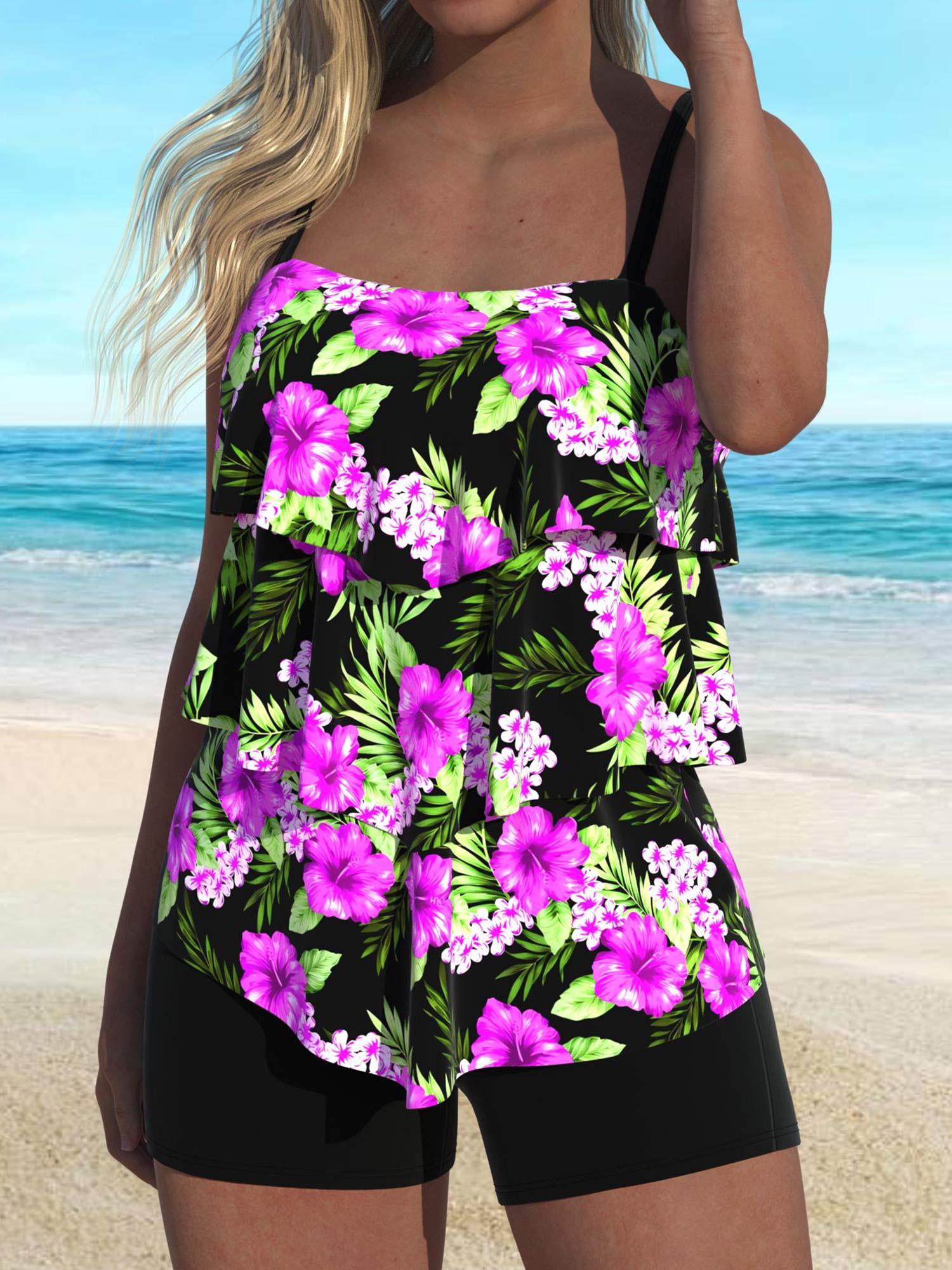 QKS03-08Fashion Women's Floral Printed Tankini Swimsuit