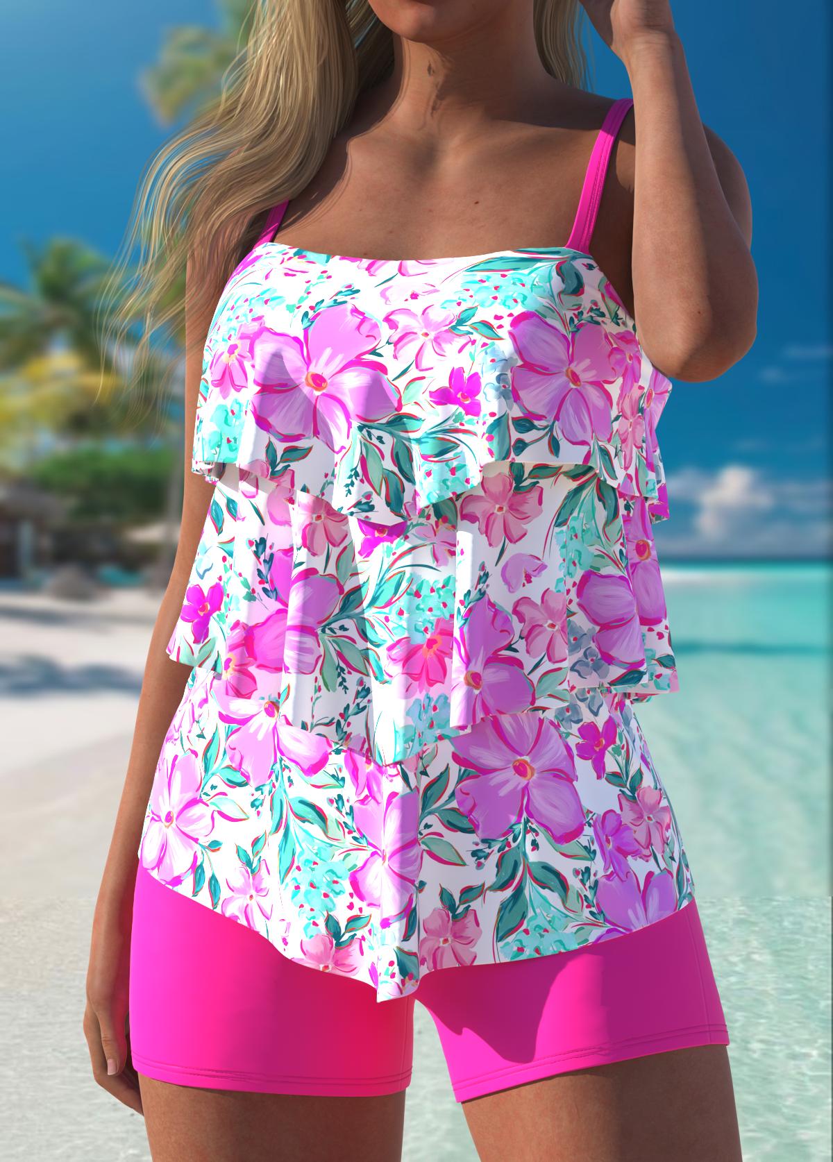 QKS03-16Fashionable floral print beach vacation women's Tankini swimsuit