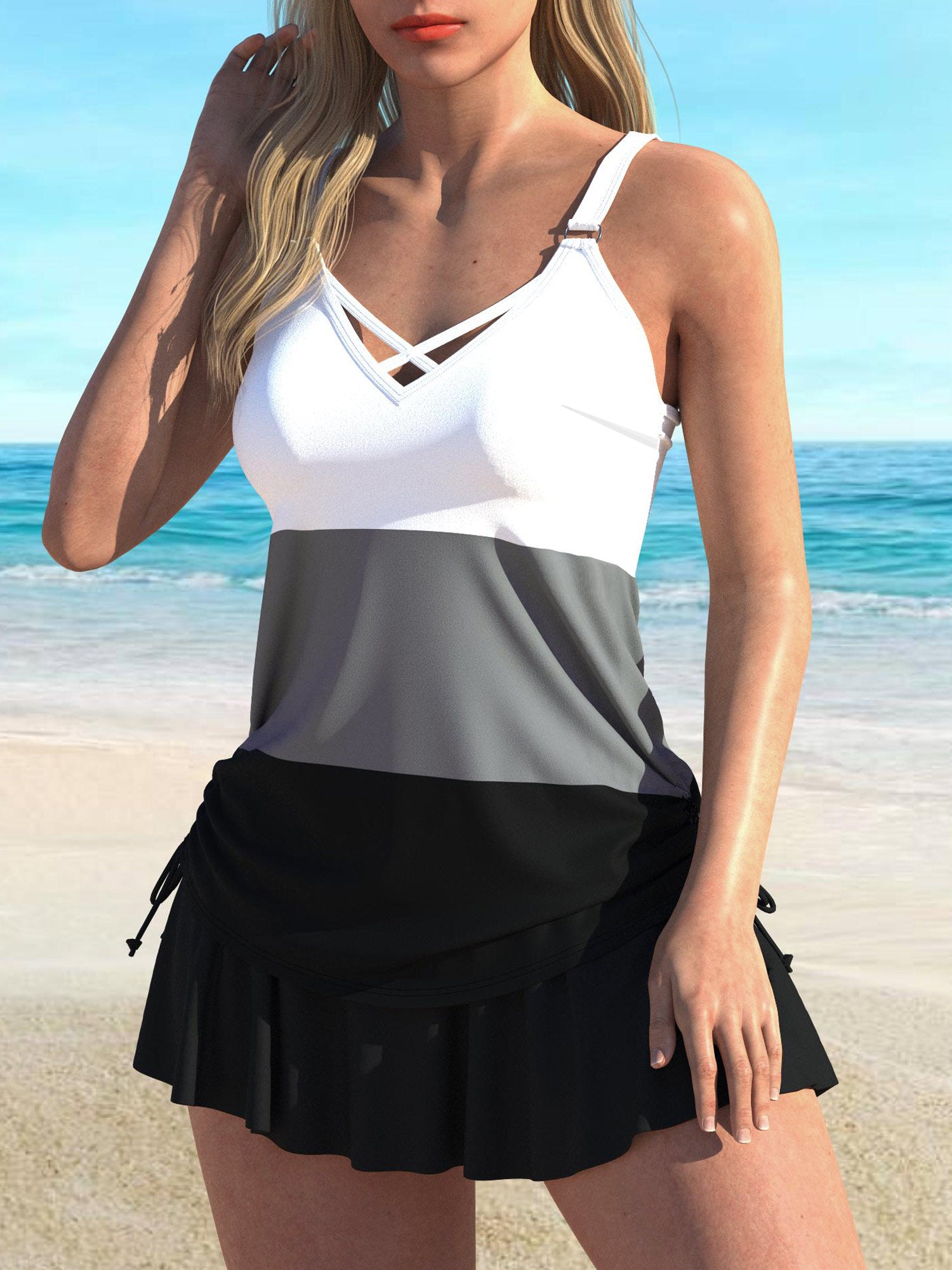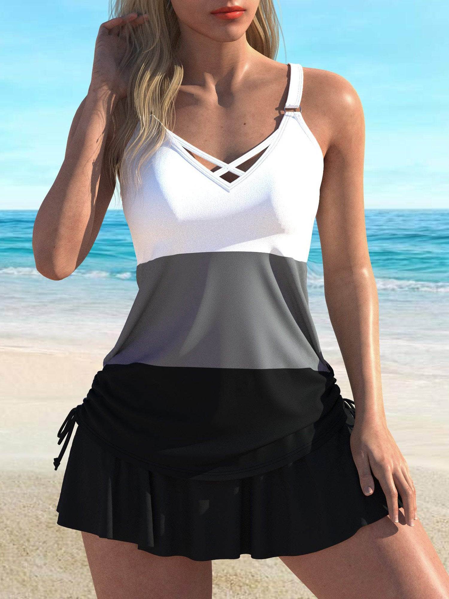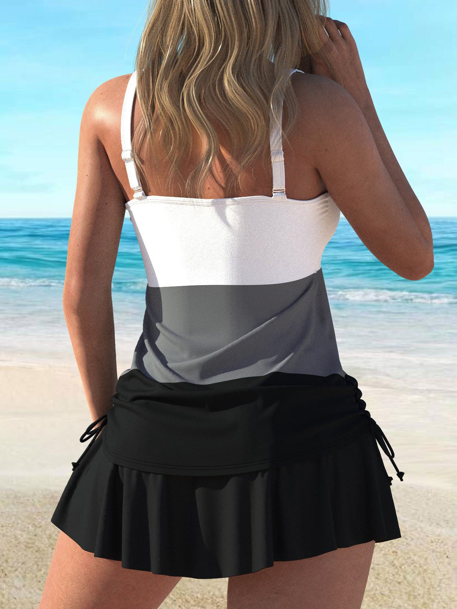 QKS08-17Fashionable patchwork printed beach vacation women's Tankini swimsuit