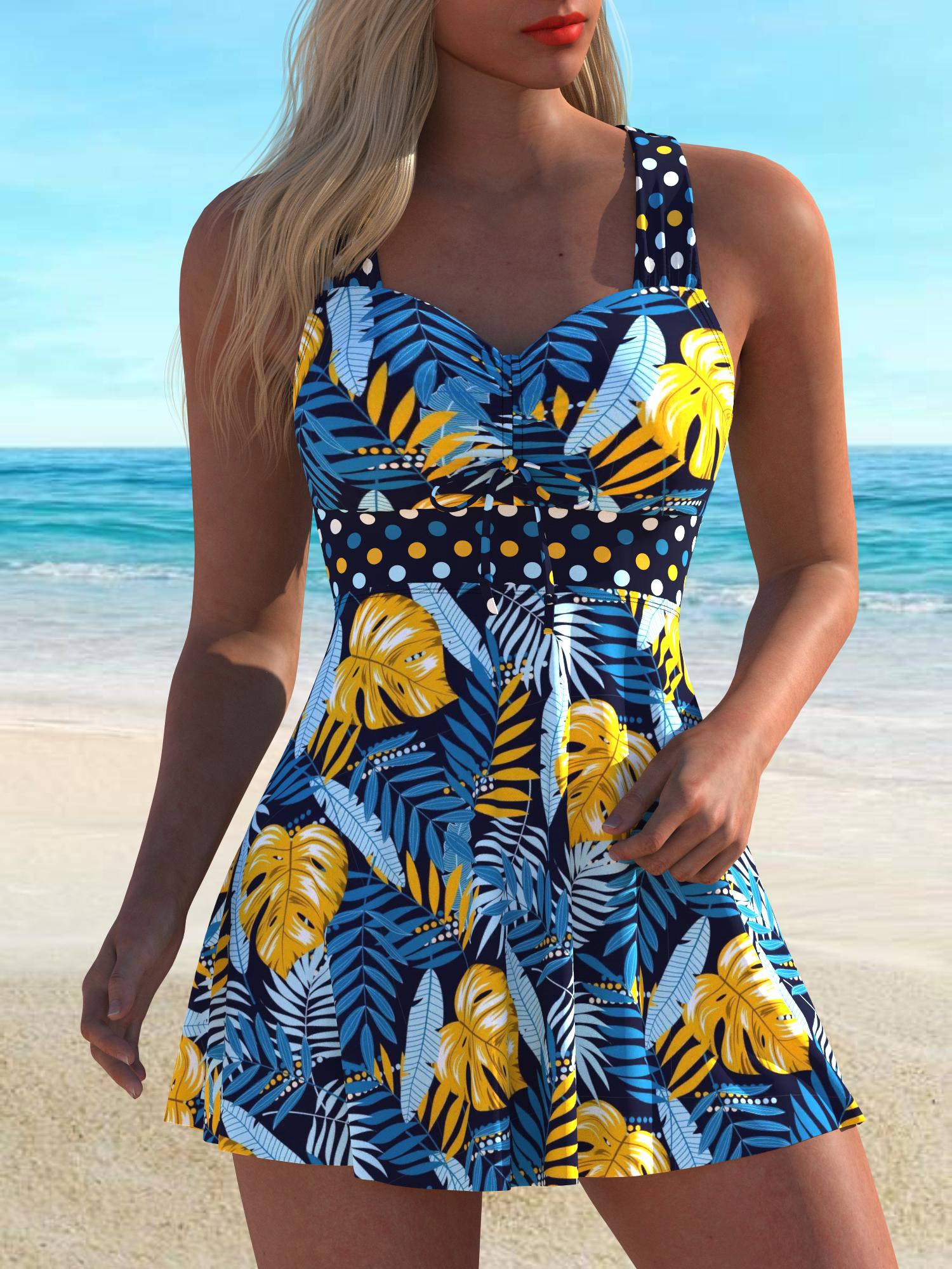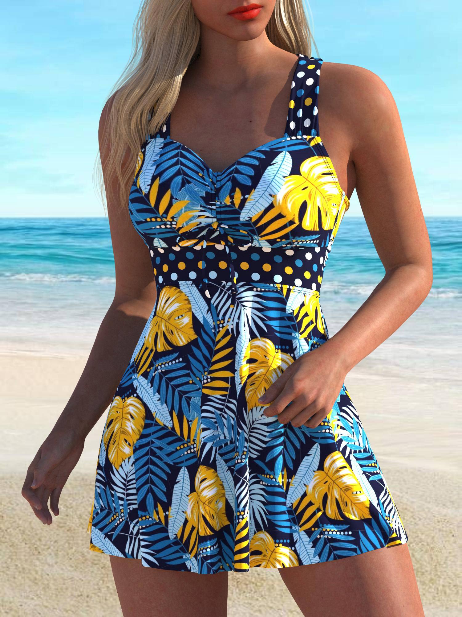 QKS69-13Fashion Printed Beach Party Slim Fit Tankini Swimsuit