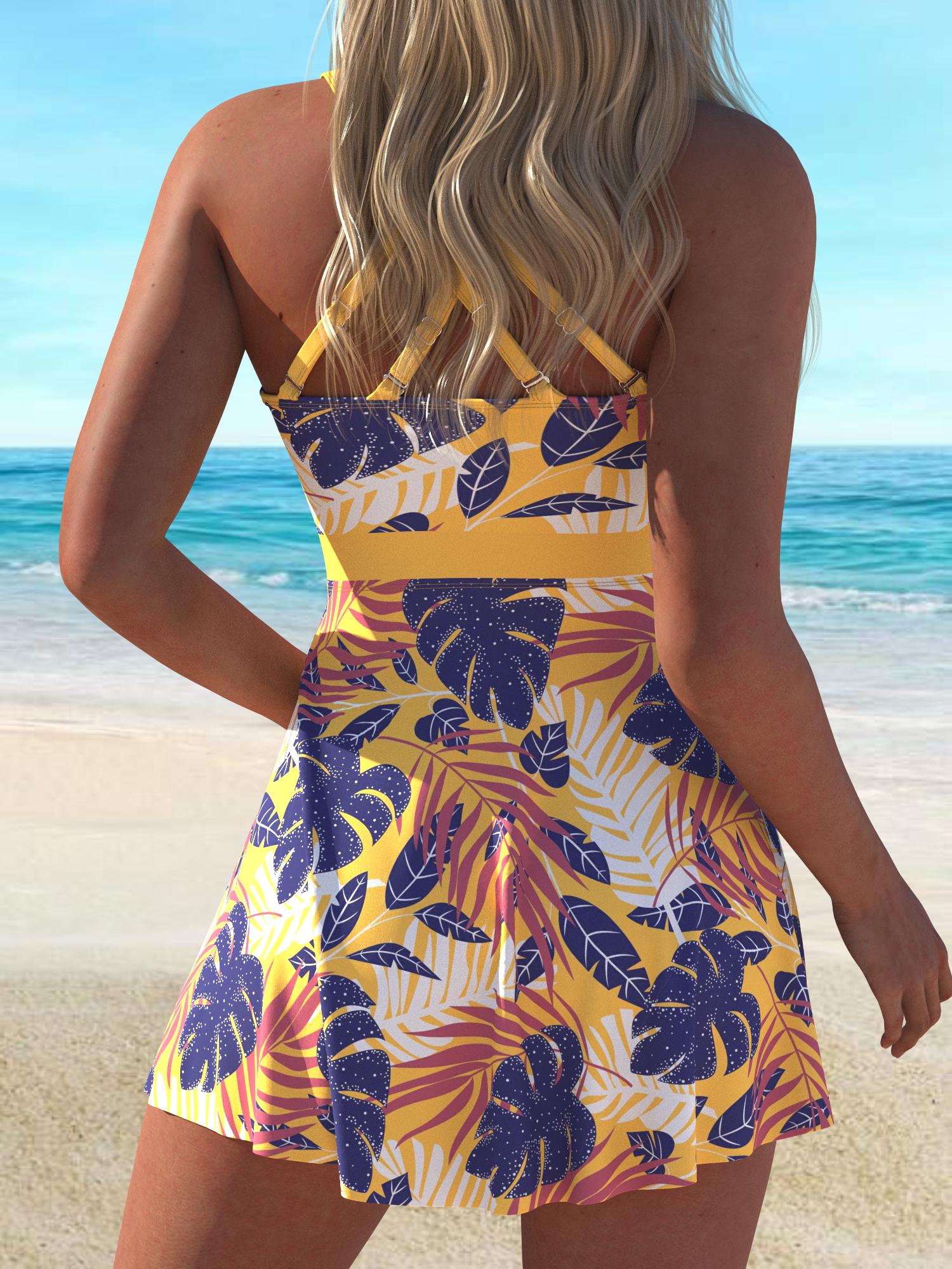 QKS69-22Fashion Printed Beach Party Slim Fit Tankini Swimsuit