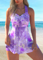 QKS69-42 Large size women's bubble printed Tankini casual swimsuit set