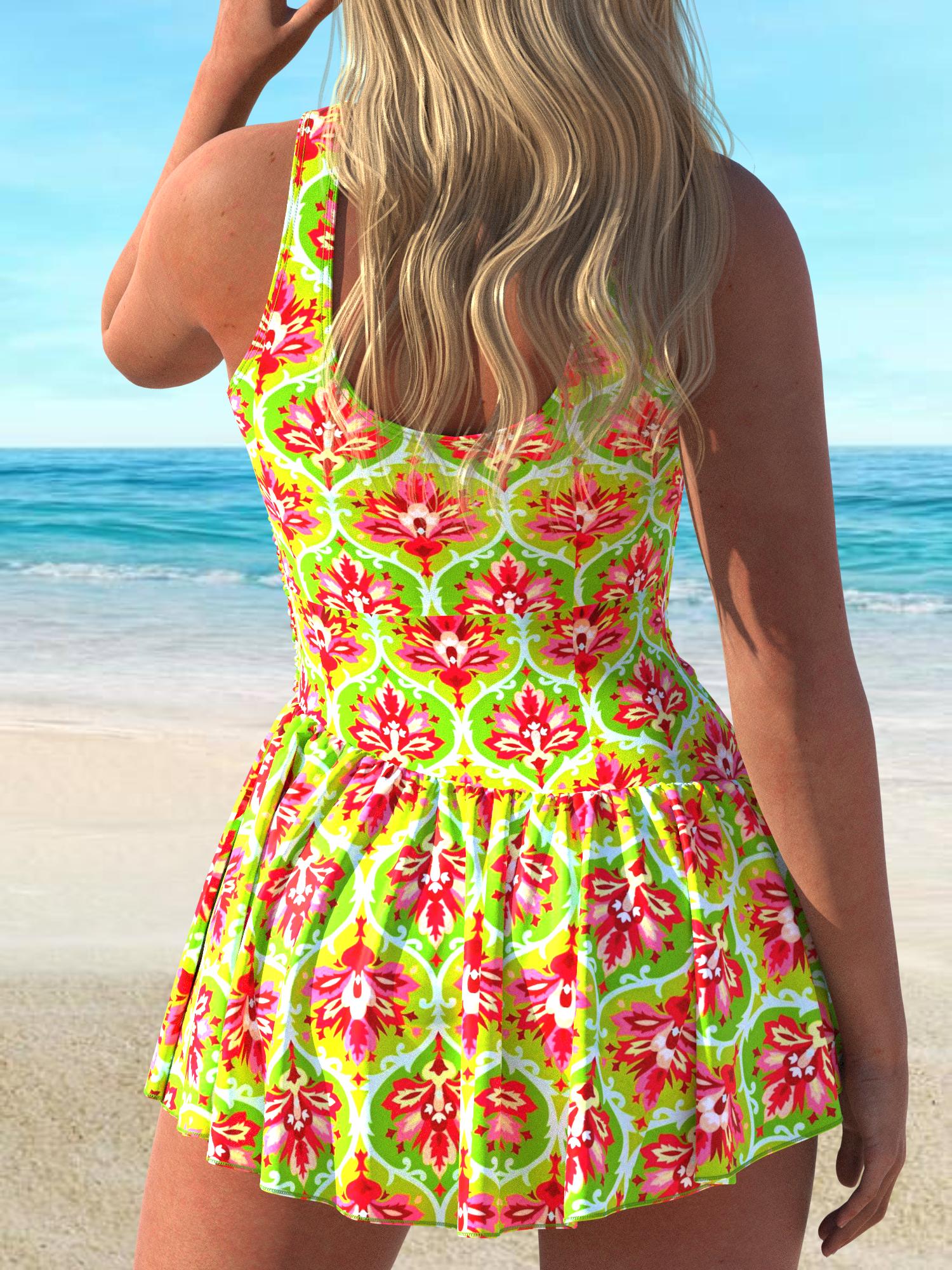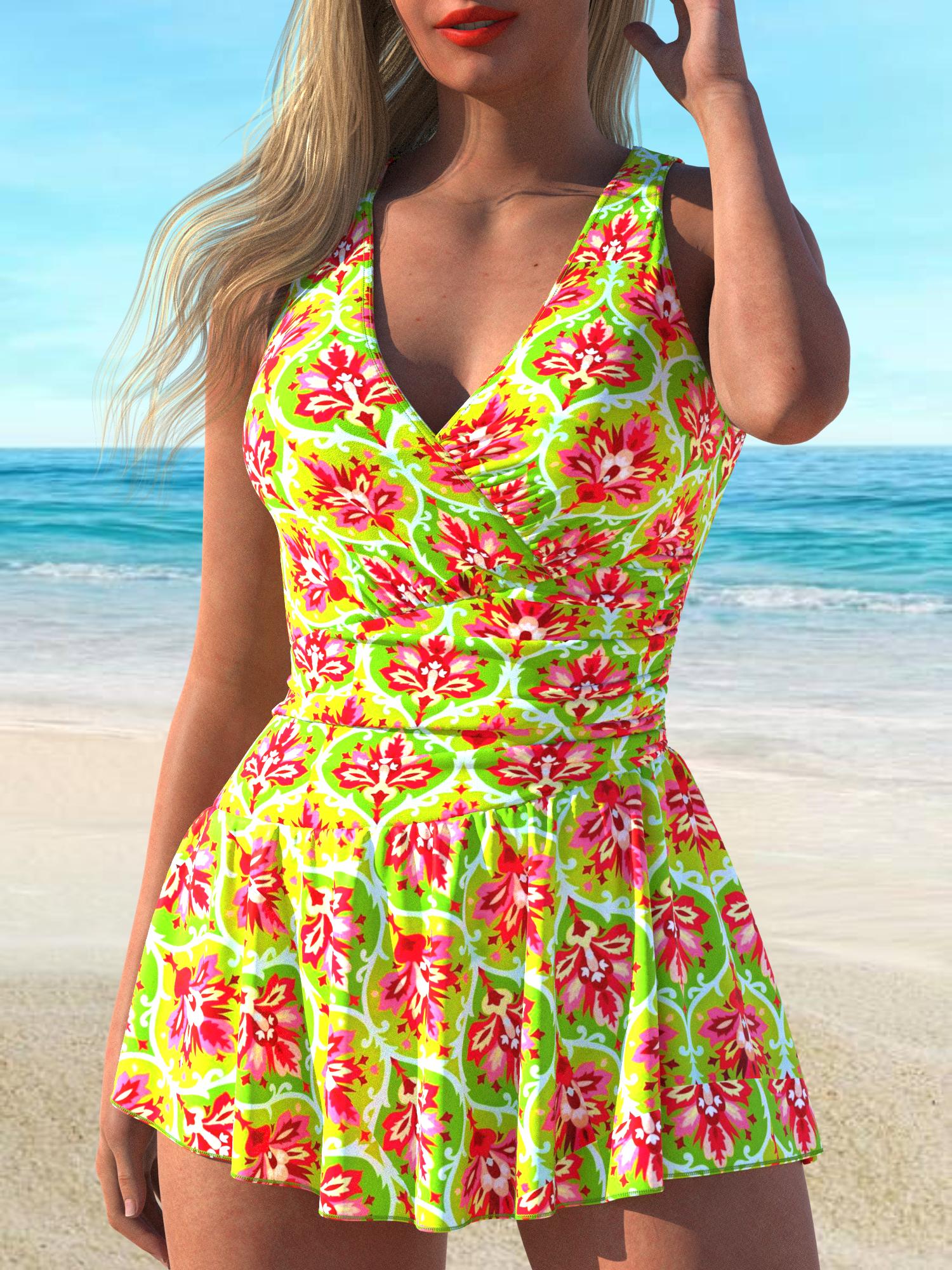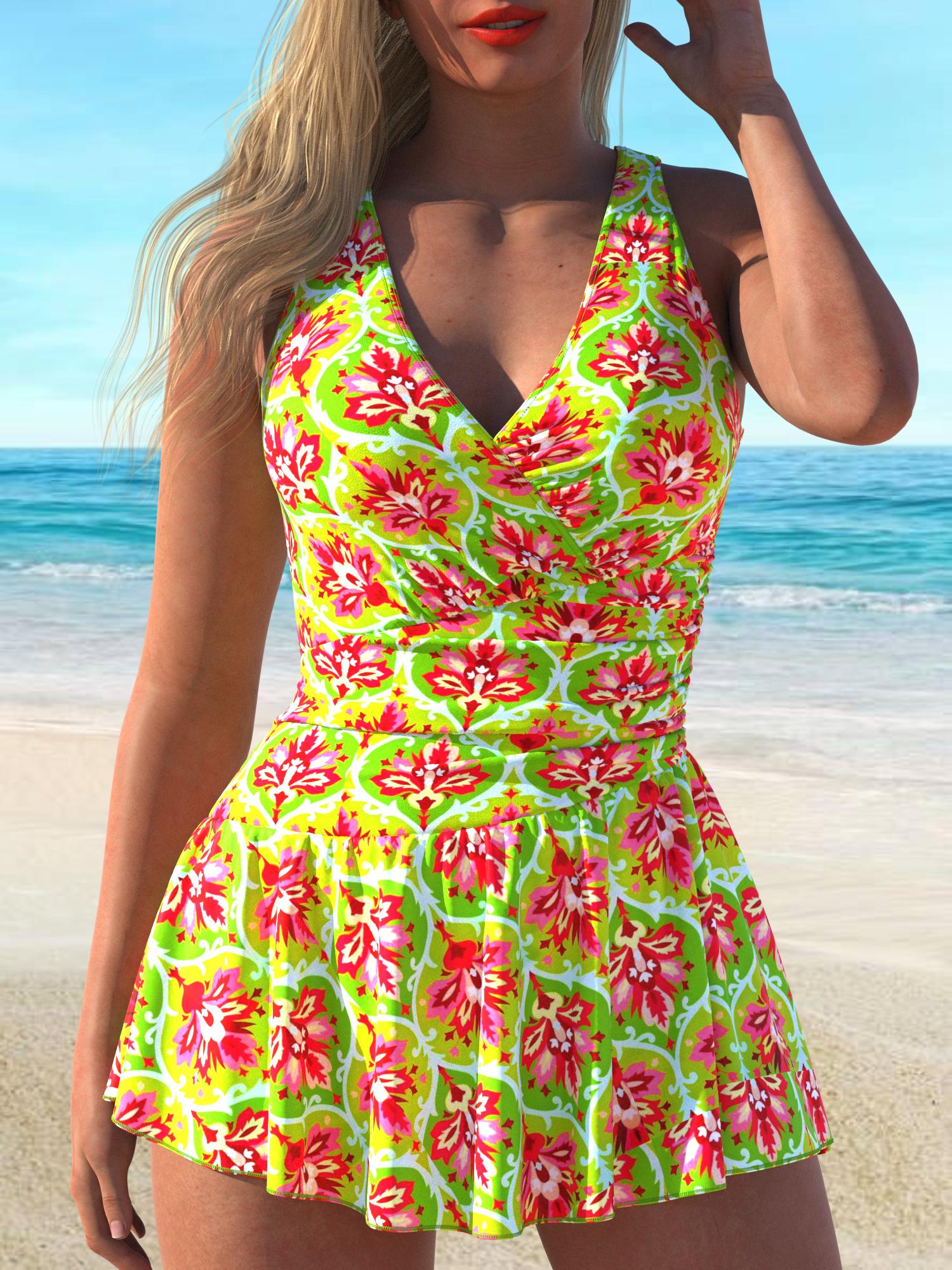 QKSA10-12Fashion Printed Vacation Beach Ladies One-piece Swimsuit