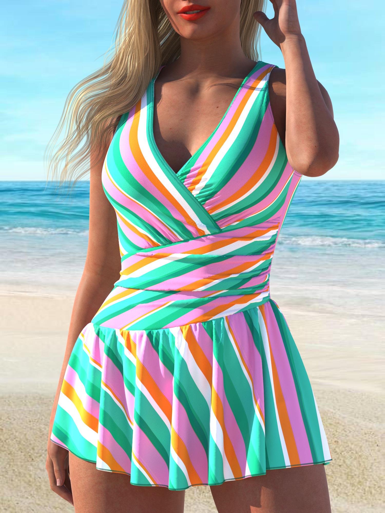 QKSA10-17Fashion Printed Vacation Beach Ladies One-piece Swimsuit