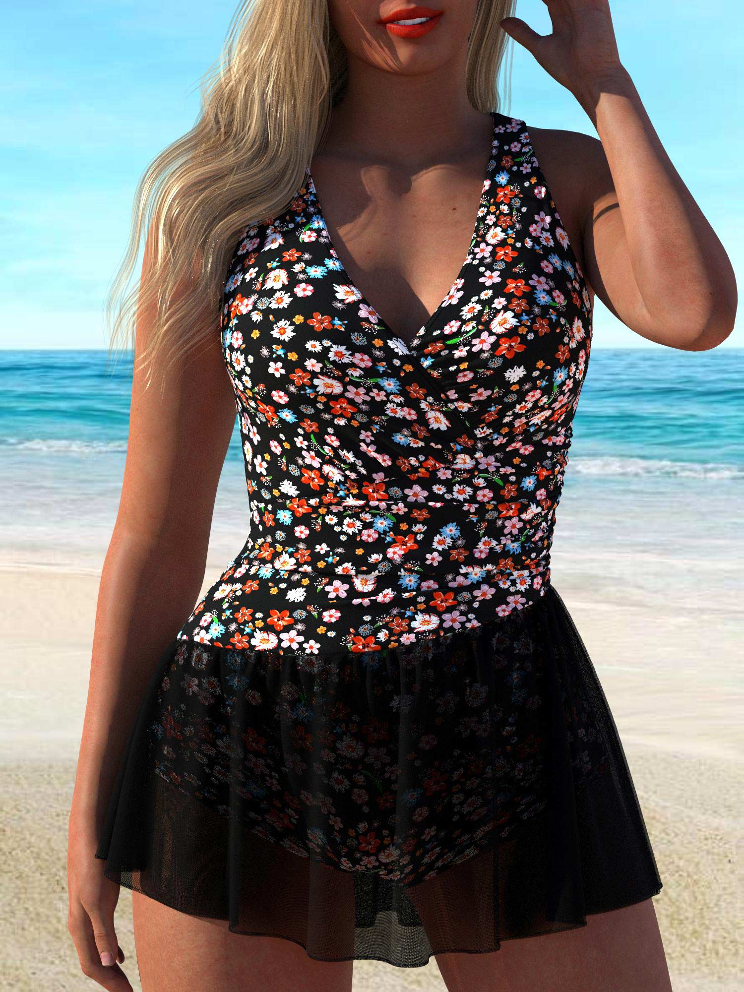 QKSA10-24Fashion Printed Vacation Beach Ladies One-piece Swimsuit