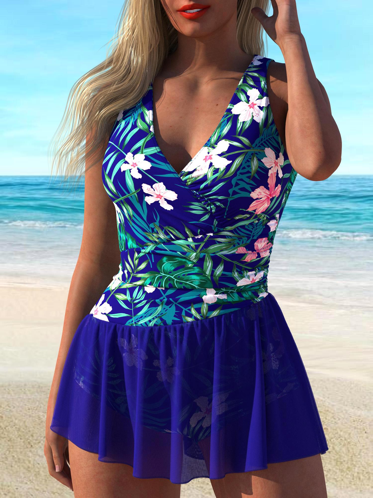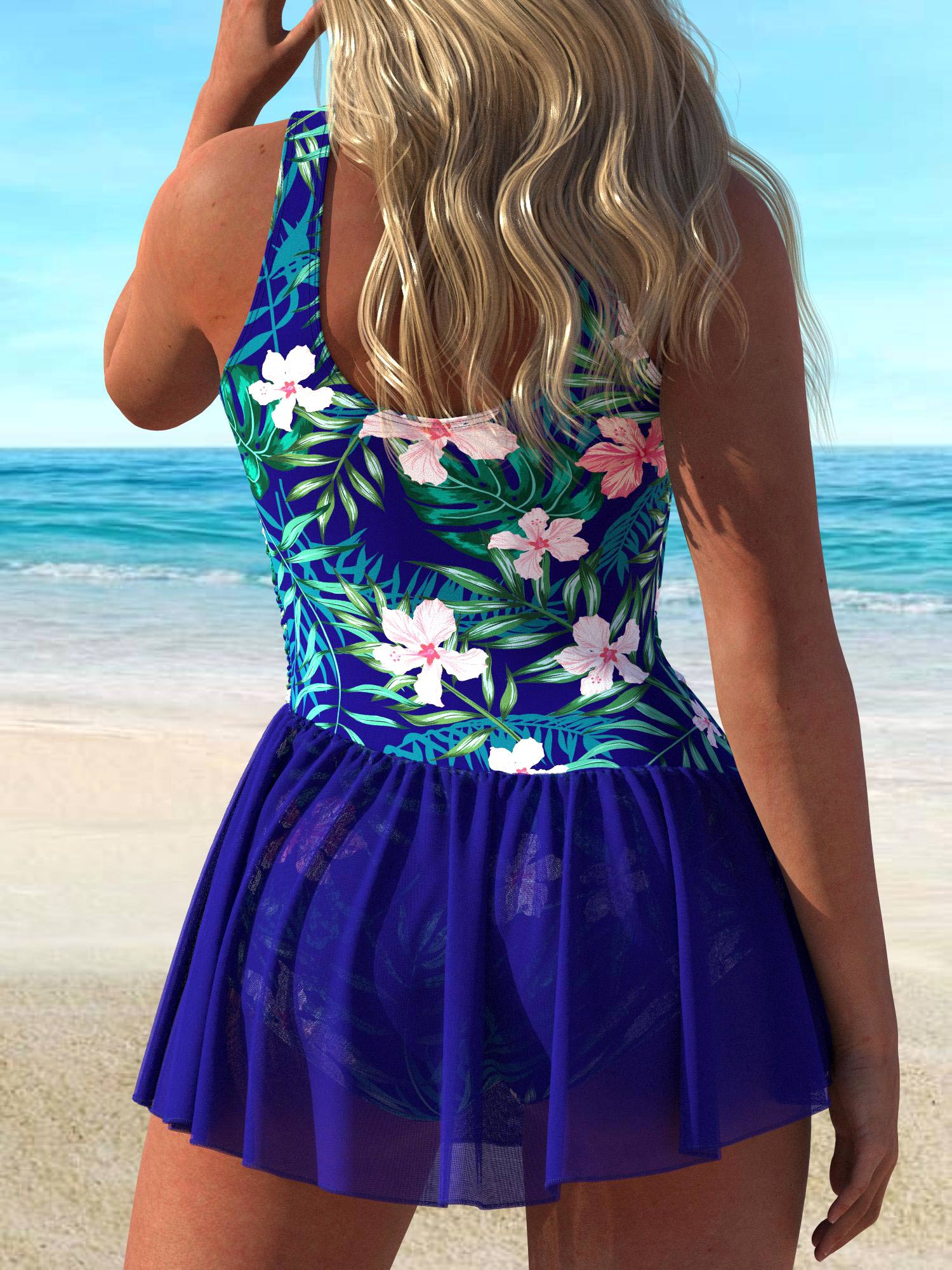 QKSA10-25Fashion Printed Vacation Beach Ladies One-piece Swimsuit