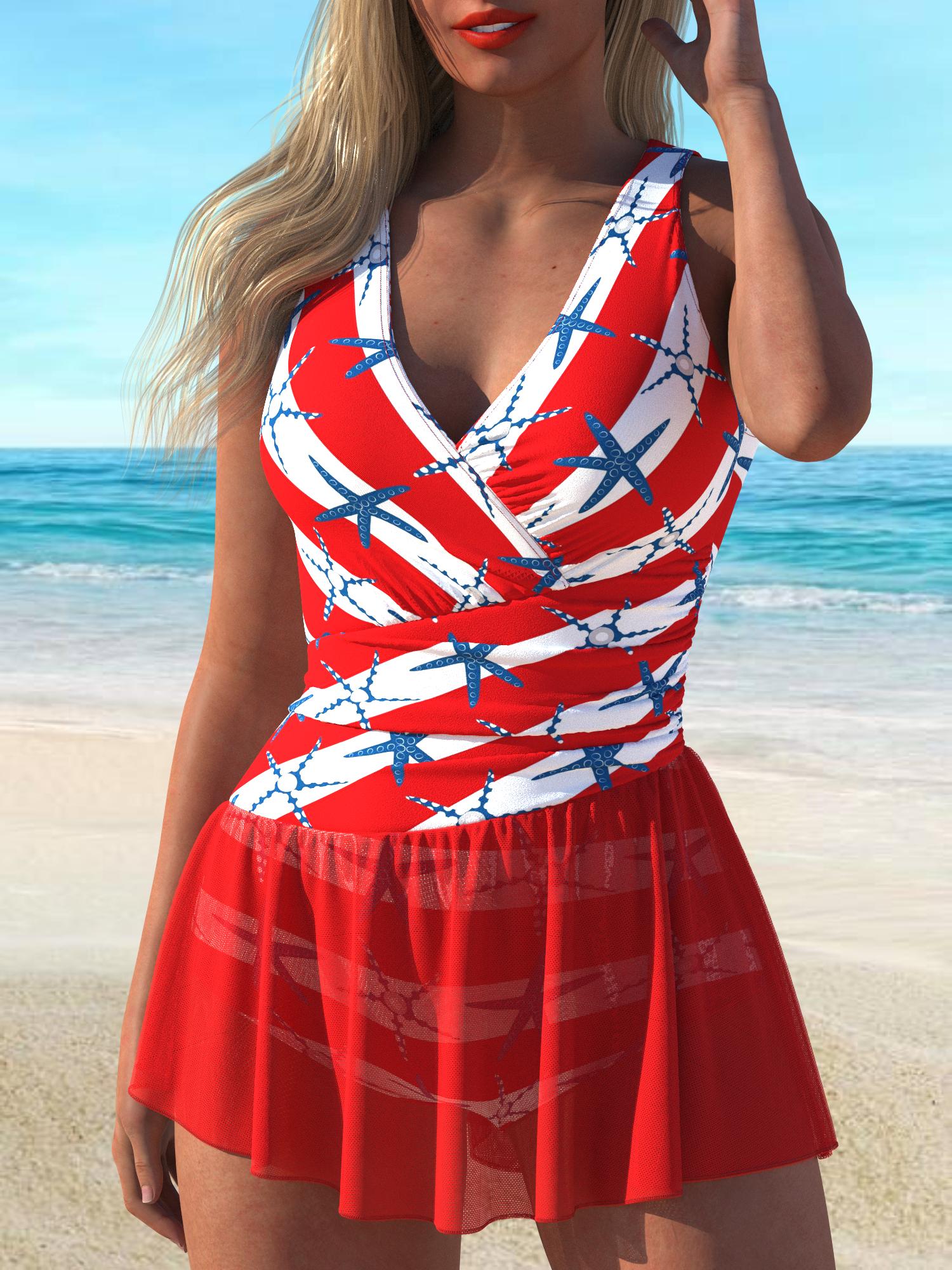 QKSA10-50Fashion Printed Vacation Beach Ladies One-piece Swimsuit