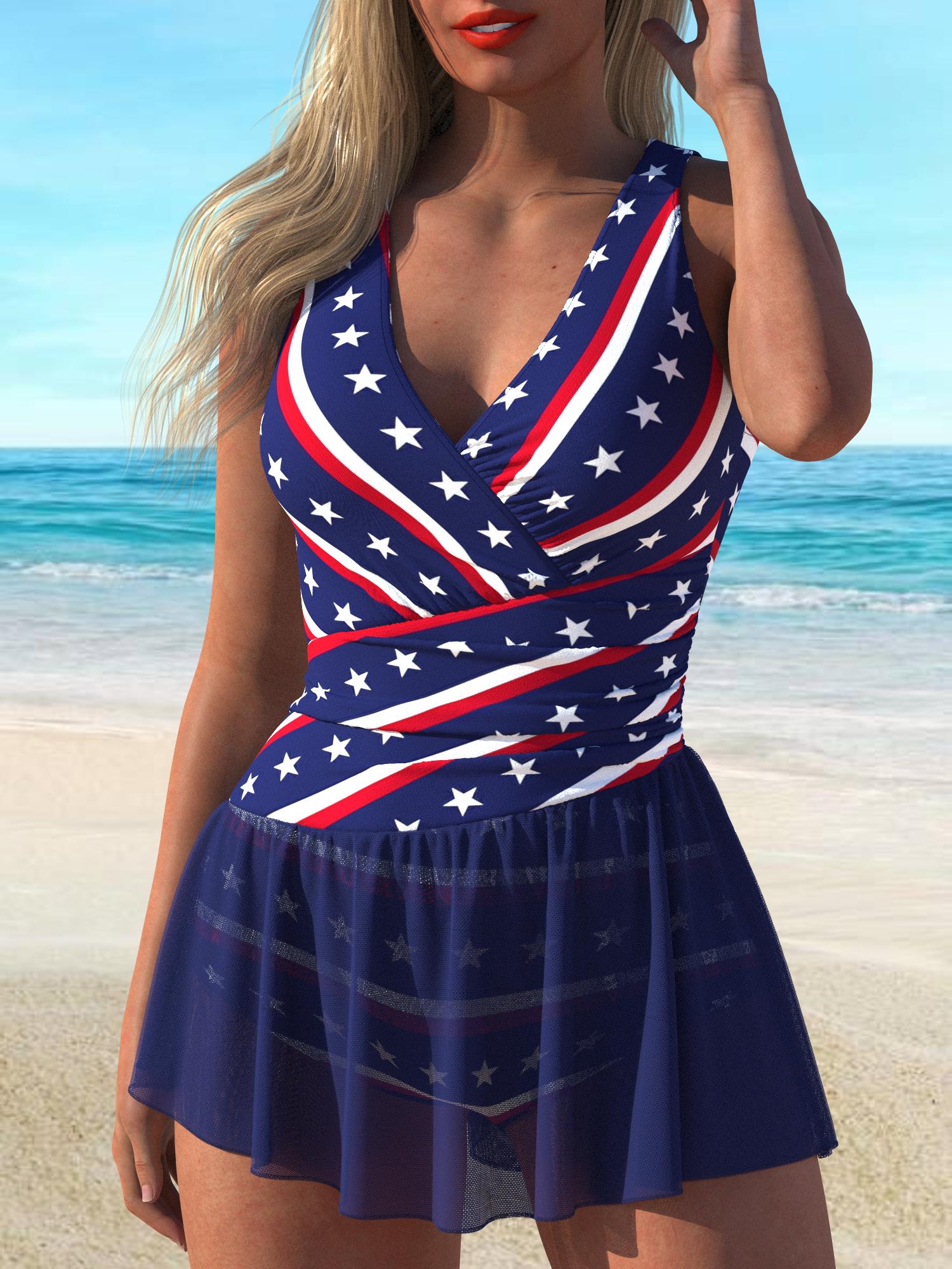 QKSA10-51Fashion Printed Vacation Beach Ladies One-piece Swimsuit