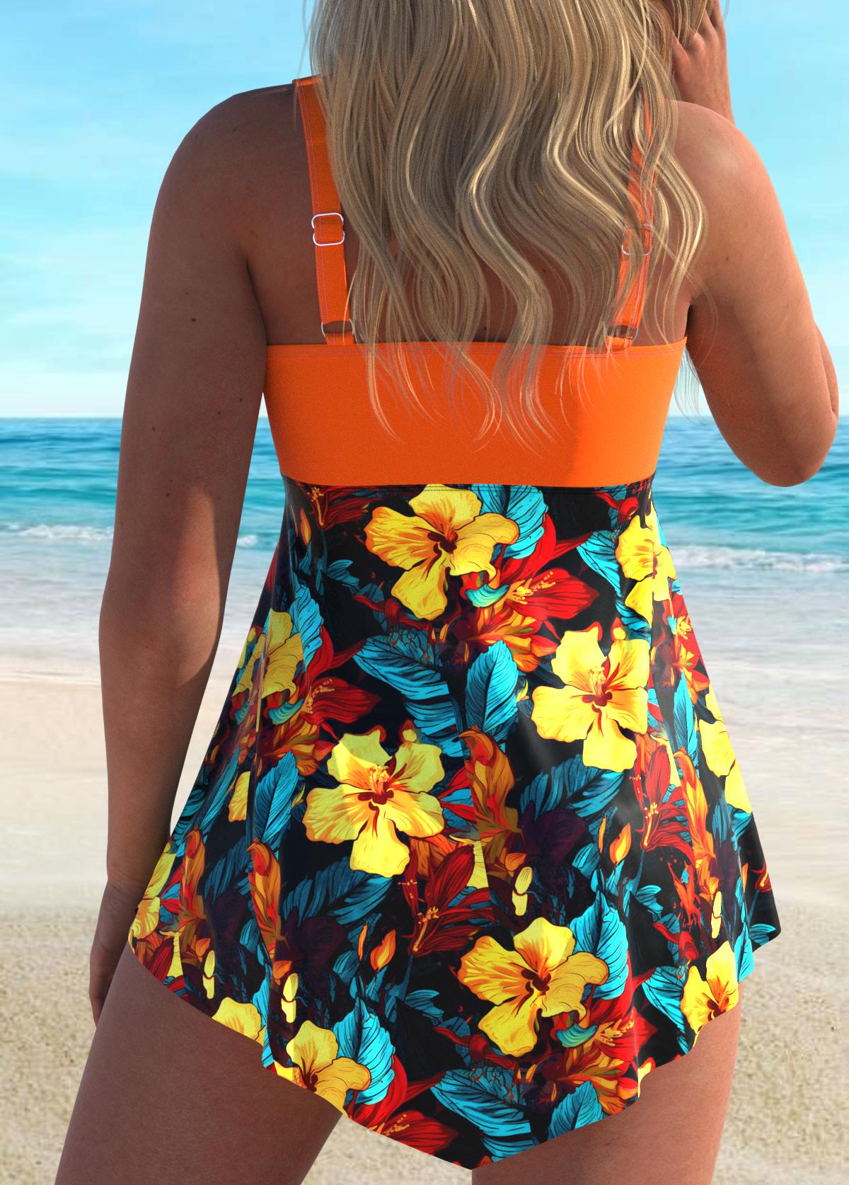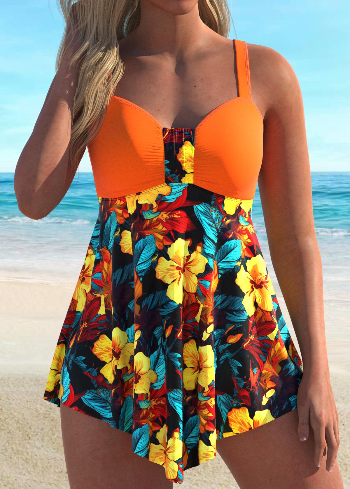 QKSA11-11Fashion Floral Print Beach Vacation Women's Tankini Swimsuit