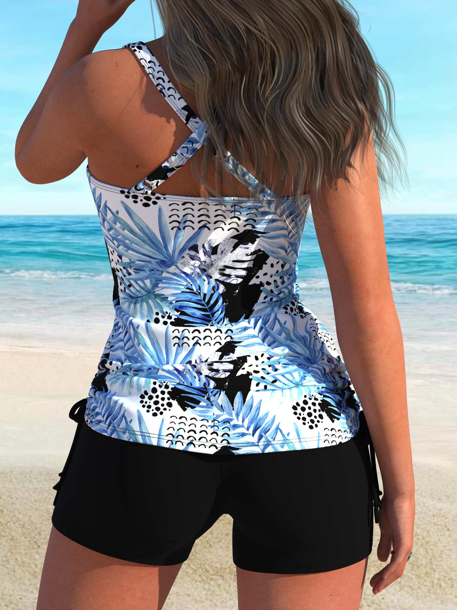 QKSA16-12Fashionable Blue Printed Beach Vacation Women's Tankini Swimsuit
