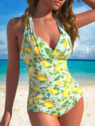 QKSA83-15Fashion Sexy Lemon Printed Beach Vacation Women's Tankini Swimsuit
