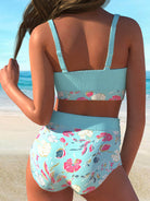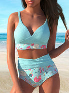 QKSB57-25Fashion Light Blue Random Print Beach Party Women's Bikini Swimsuit